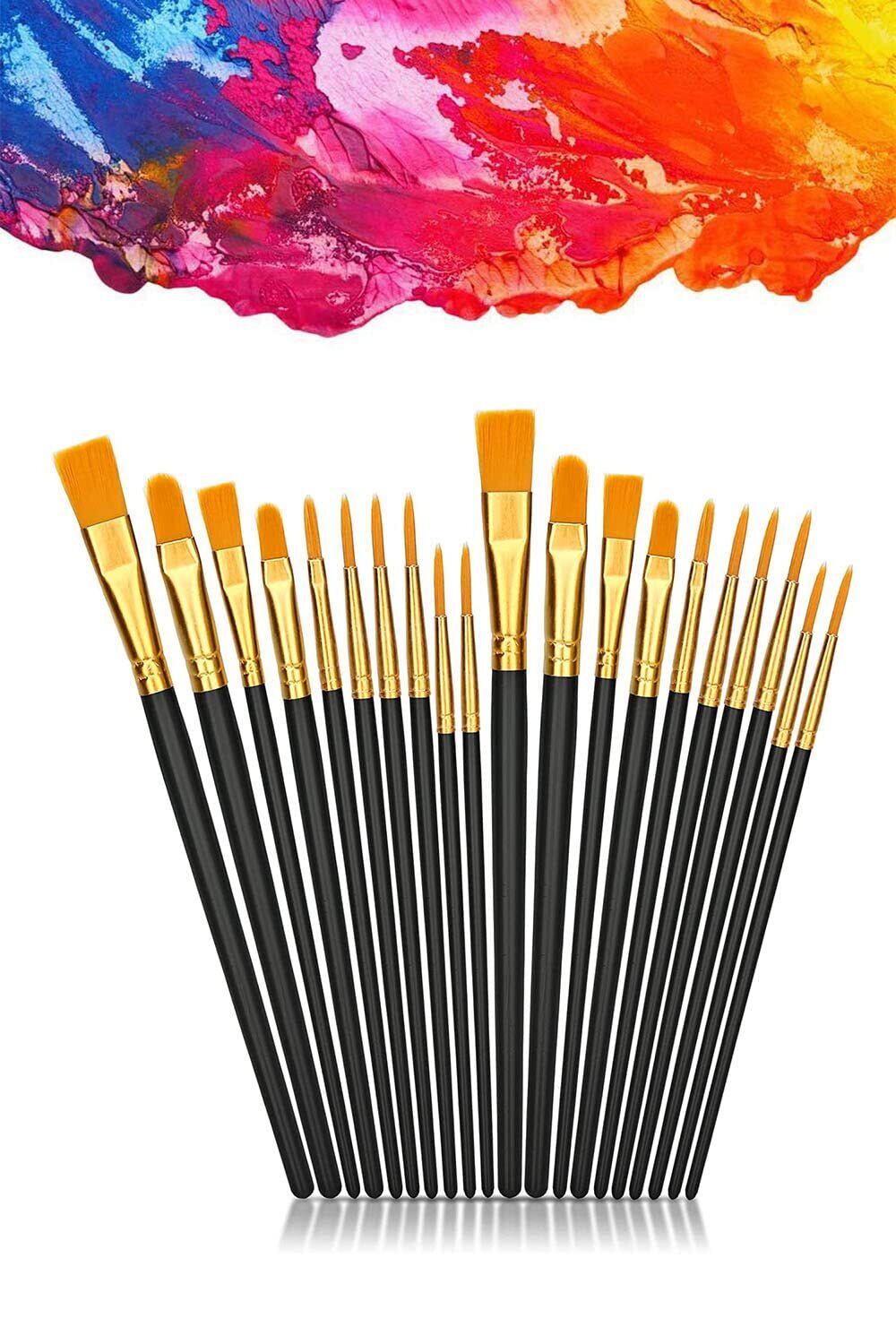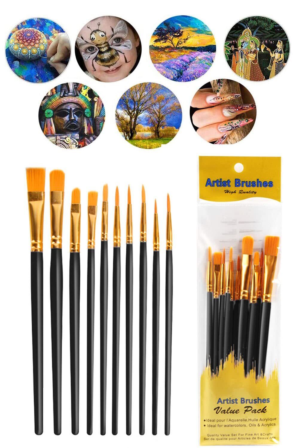 LIKENNY 画材筆 ペイントブラシ 10本セット 油絵筆 水彩筆 絵筆 アクリル絵の具 平型筆 丸筆 ナイロンの毛 画筆 短毛筆 大人&子供用 (ブラック)