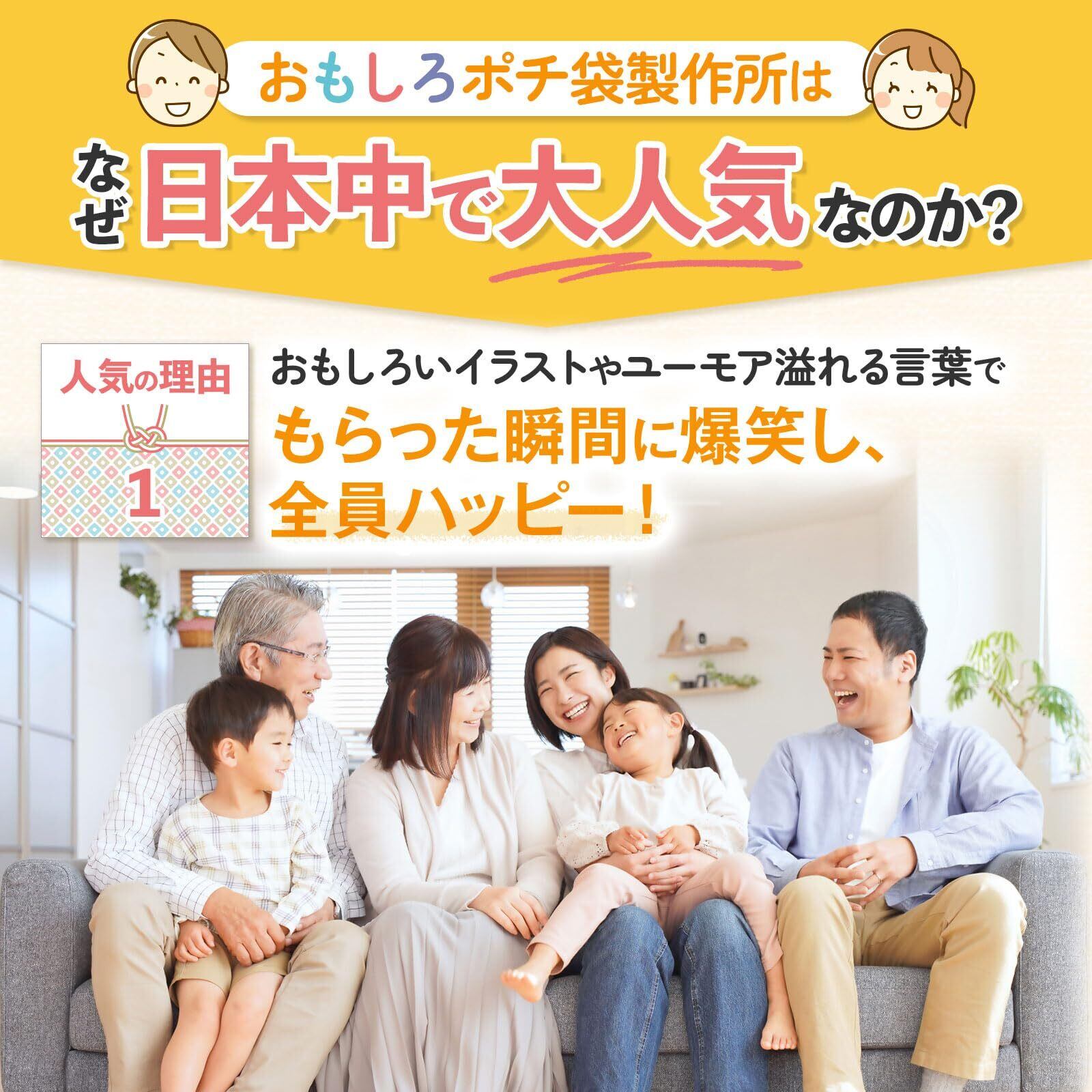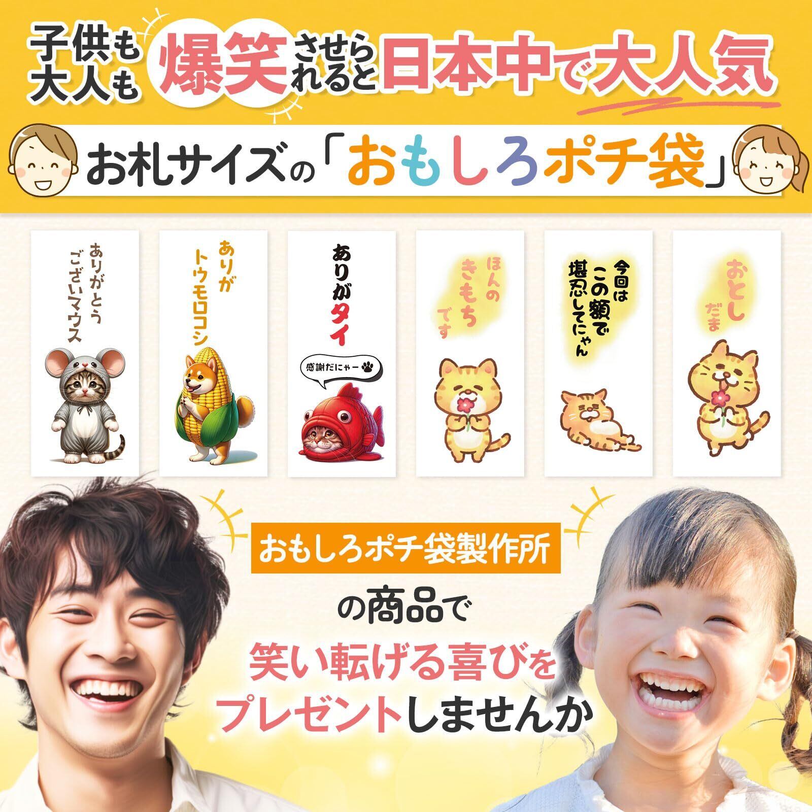 おもしろポチ袋は、お年玉袋・お小遣い袋・お祝い袋・ご祝儀袋・給料袋・月謝袋・お礼封筒・お車代・心付け・お返しなど、さまざまな場面で活躍します。子どもから大人まで、幅広くお使いいただけます。