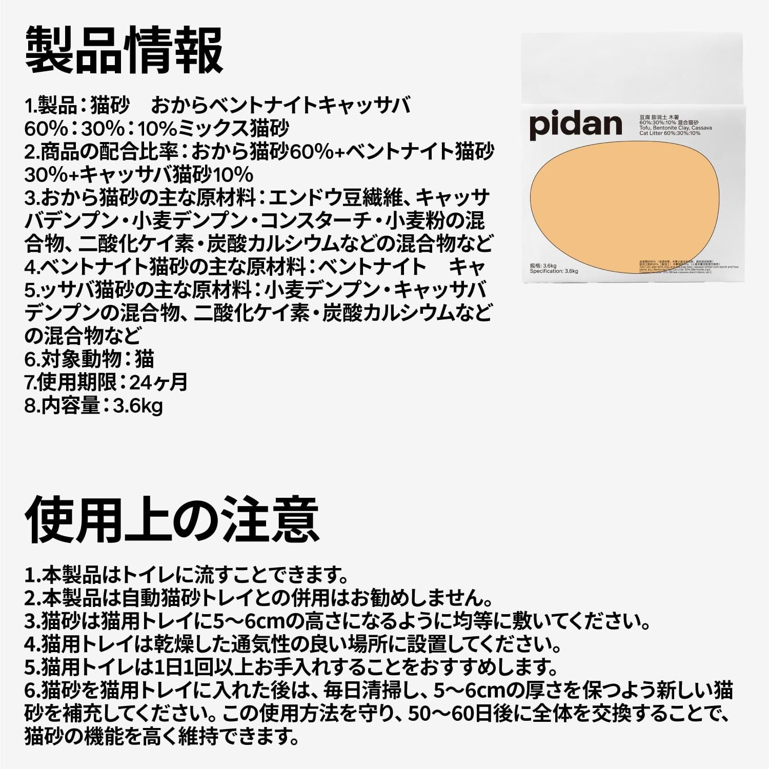 pidan 猫砂 おから 固まる ベントナイトとおから 混ぜる 脱臭 真空パック 飛び散らない 天然素材 臭みから解放 (3.6kg×1袋)