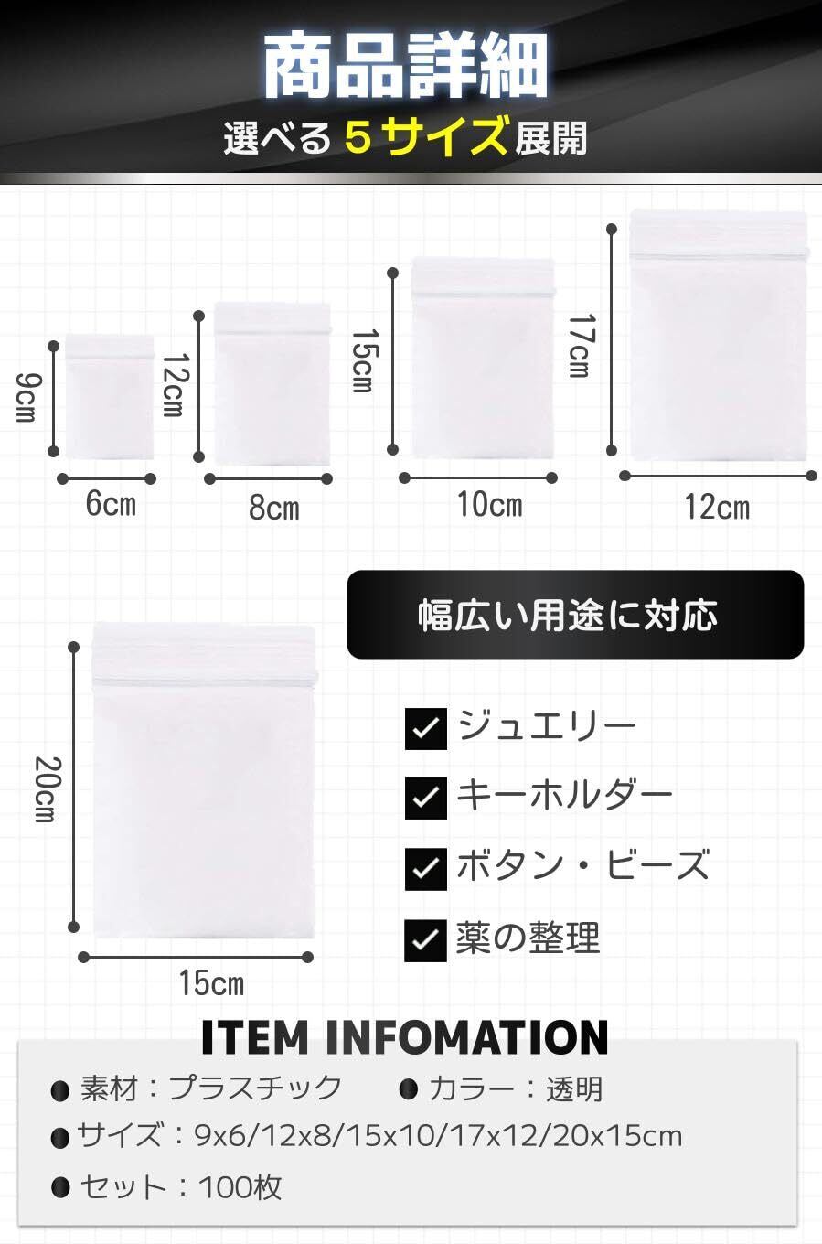 特徴 ジッパー付き