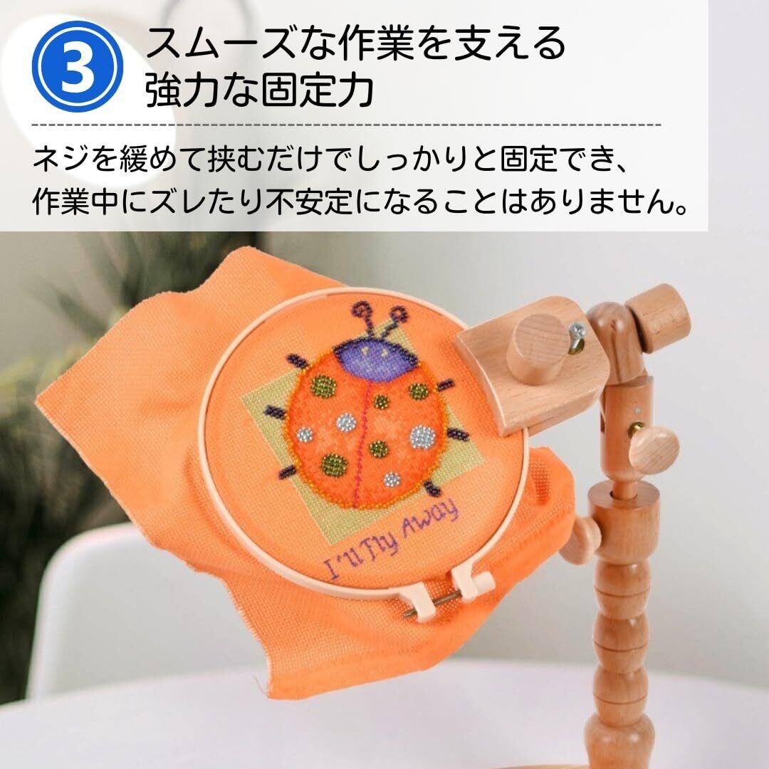 【クオリティを引き上げる刺繍枠】さまざまなサイズの刺繍枠をしっかり固定できるスタンド。安定した作業環境で、創作の幅を広げます。