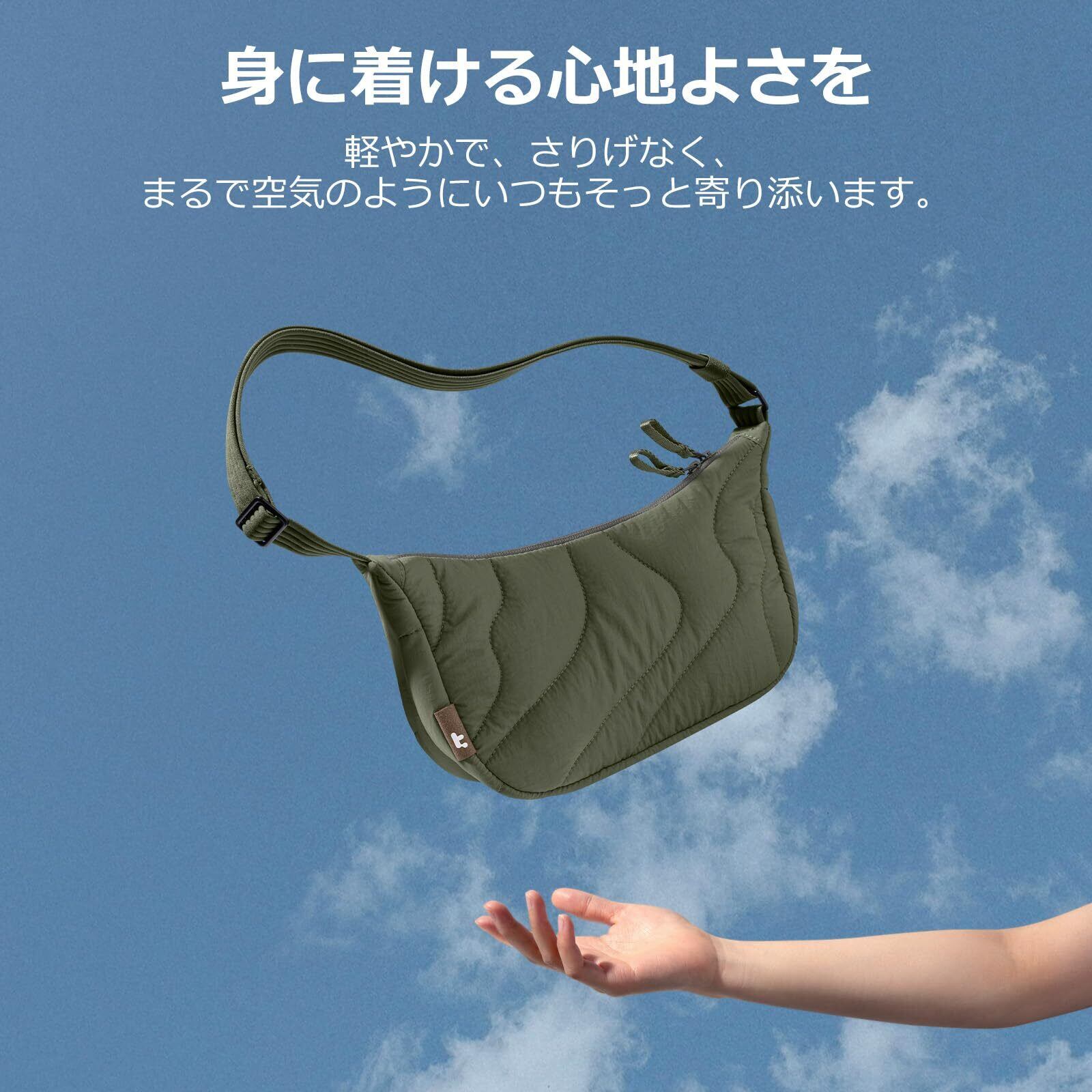 【気にならない軽さ】実感できる軽量設計は、長時間身につけても負担を感じません。体にそっと寄り添い、動きを妨げない快適さ。ショルダーストラップもふんわりして肩に優しく、長時間の持ち歩きでも疲れません。 旅行から通勤、日常のちょっとしたお出かけまで、毎日をもっと軽やかに、ストレスなく使える斜めがけバッグ。