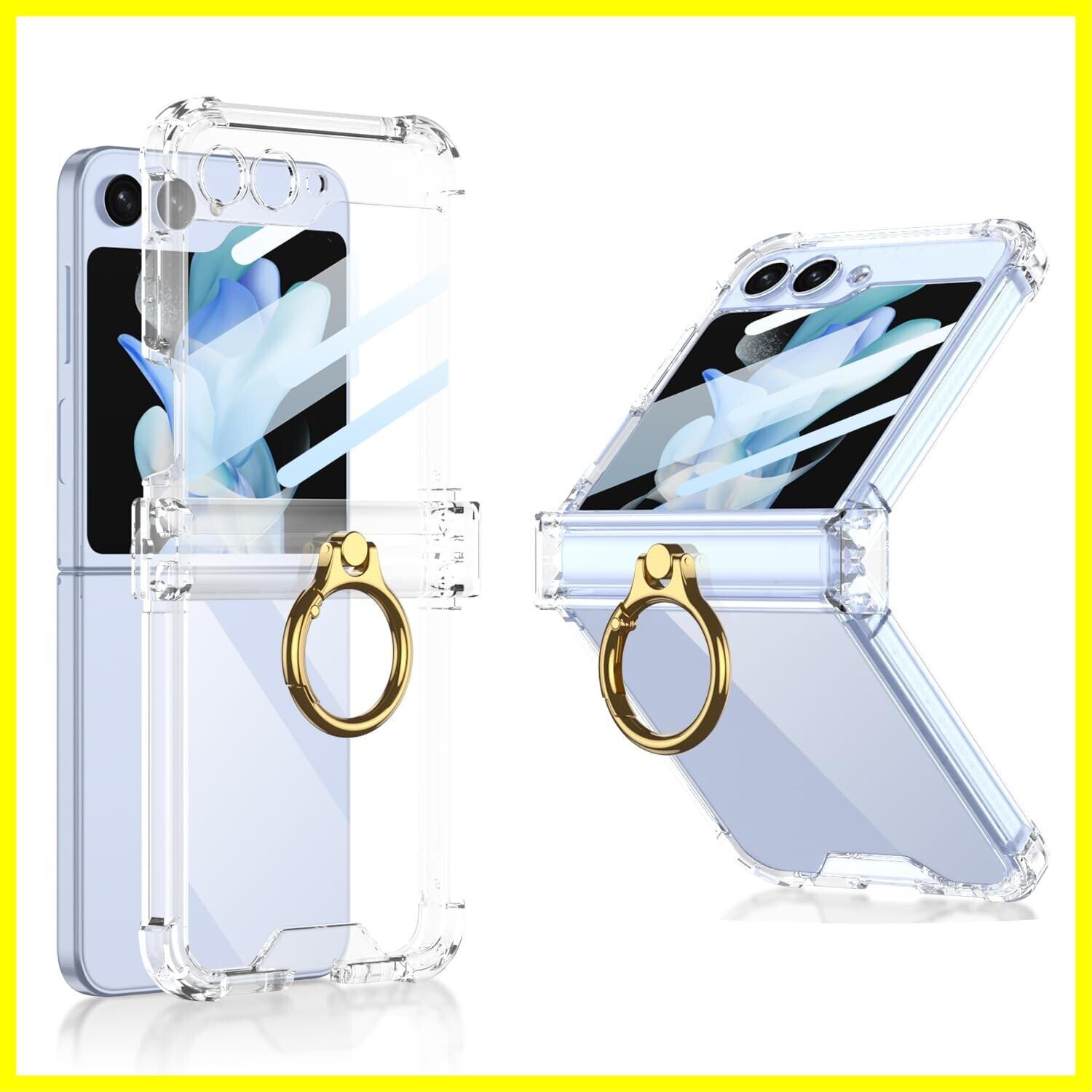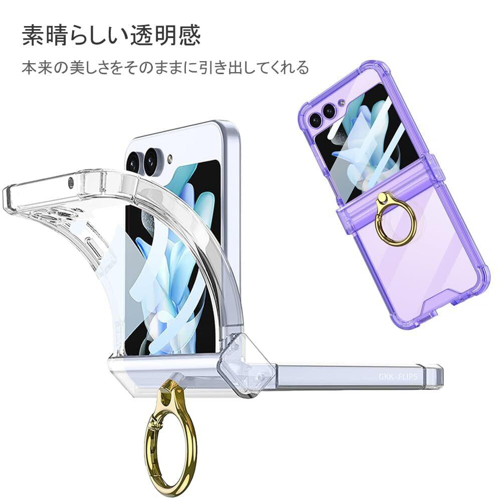 Galaxy Z Flip5 ケース クリア Samsung ギャラクシーzフリップ 5 / SC-54D / SCG23 用 カバー リング付き ヒンジ保護 Uovon スマホケース 耐衝撃 スタンド機能 ストラップ穴付き 超軽量 超薄型 黄変防止 おしゃれ・クリア