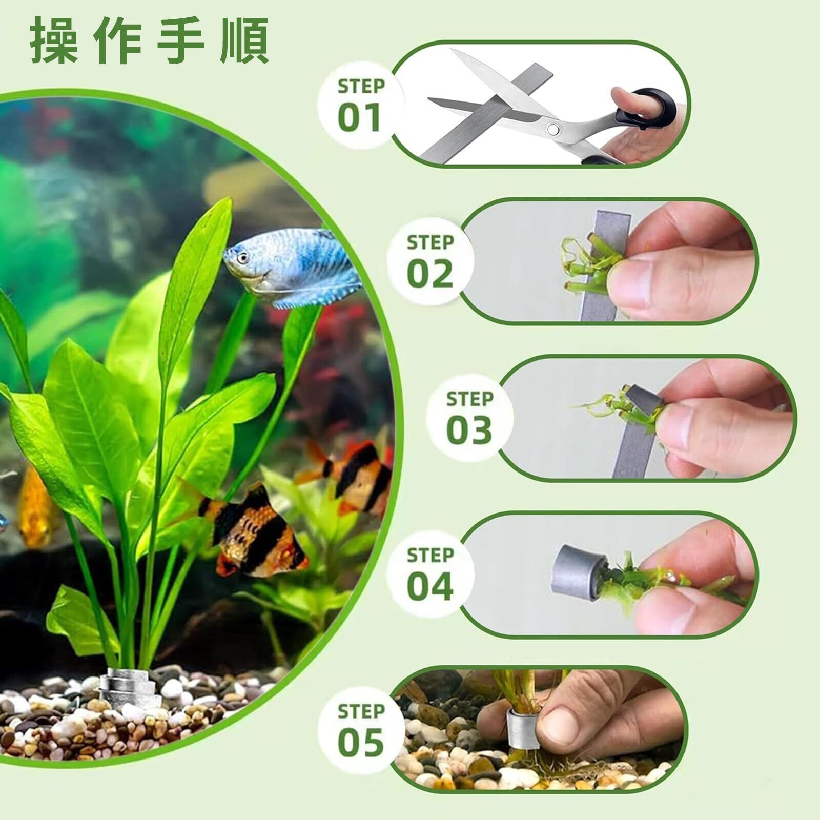 【使い勝手】必要に応じて裁断し、水草の茎の幹に巻きつけ、必要なサイズや形に合わせて曲げることができます。これらの水草固定器の重量は、水面に浮くことなく、砂利の中に簡単に隠れることができ、水槽の水草の美しさを維持しながら、水草をよりよく根付かせることができます。