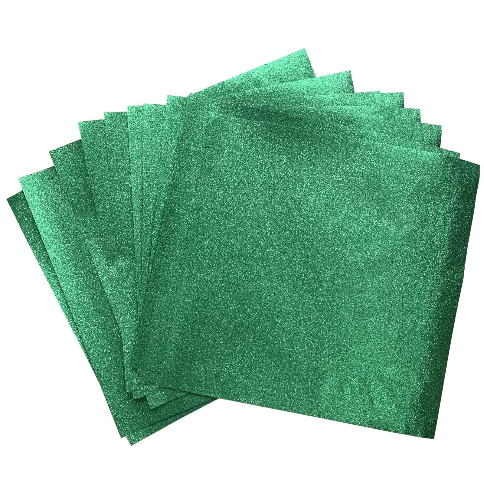 DIYギフト用グリッターシート / シールタイプ 30cm x 30cm サイズ不同色10枚セット グリーン