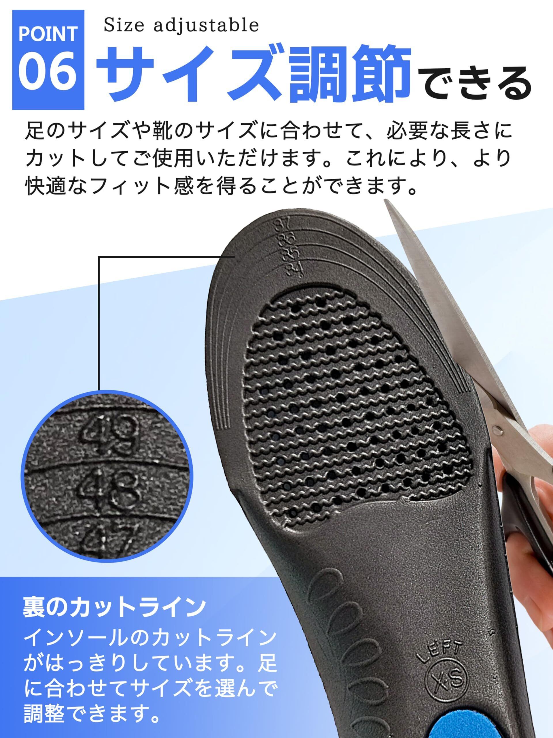 【柔軟性のある素材】炭素繊維配合で防臭効果が見込めます。また、蒸れを防ぐ通気口があるのでダブルでの防臭効果 が見込めます。EVAとベルベットの素材を使う、履き心地がよく、どの靴でも入れやすいタイプです。衝撃への耐久性と優れたクッション性で、お持ちの靴底にも足の形にもしっかり馴染んで足裏全体でサポート!長時間の歩行でも疲れにくく快適!