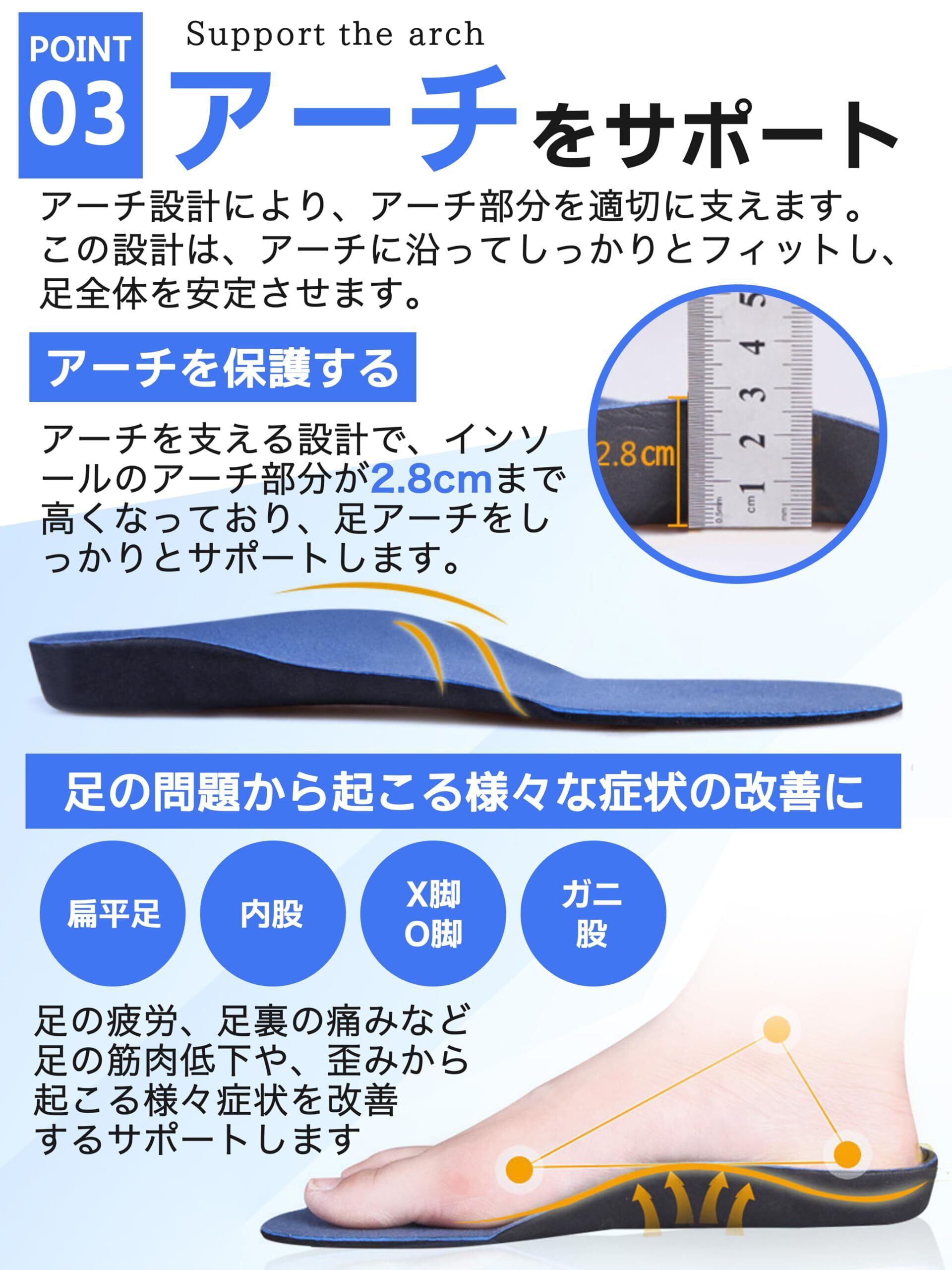 [JIFANPAUL] インソール アーチサポート 土踏まず 衝撃吸収 立体 3D 中敷き かかと 疲れにくい 立ち仕事 疲れない スニーカー スポーツ ランニング靴 メンズ レディース 軽量 滑らない