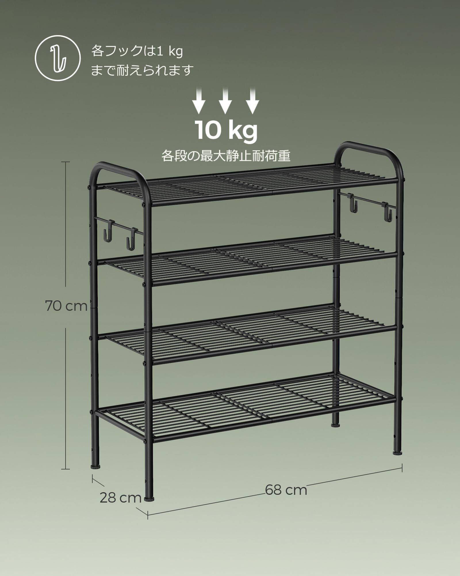 SONGMICS シューズラック スリム 省スペース 4段 玄関 おしゃれ 大容量 下駄箱 靴箱 整理 組立簡単 68x28x70.4cm LMR069B01