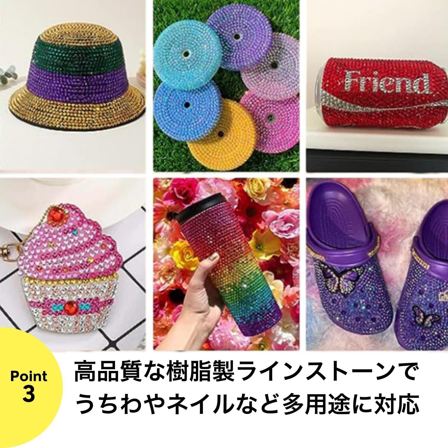 【サイズ・バリエーション】豊富なカラーテイストから選べる15色入りのラインストーンセット。ストーンサイズは3mm・4mm・5mm・6mmの4種類。高品質な樹脂製ラインストーンで、うちわ・ネイル・レジン・スマホデコなど多用途に対応。