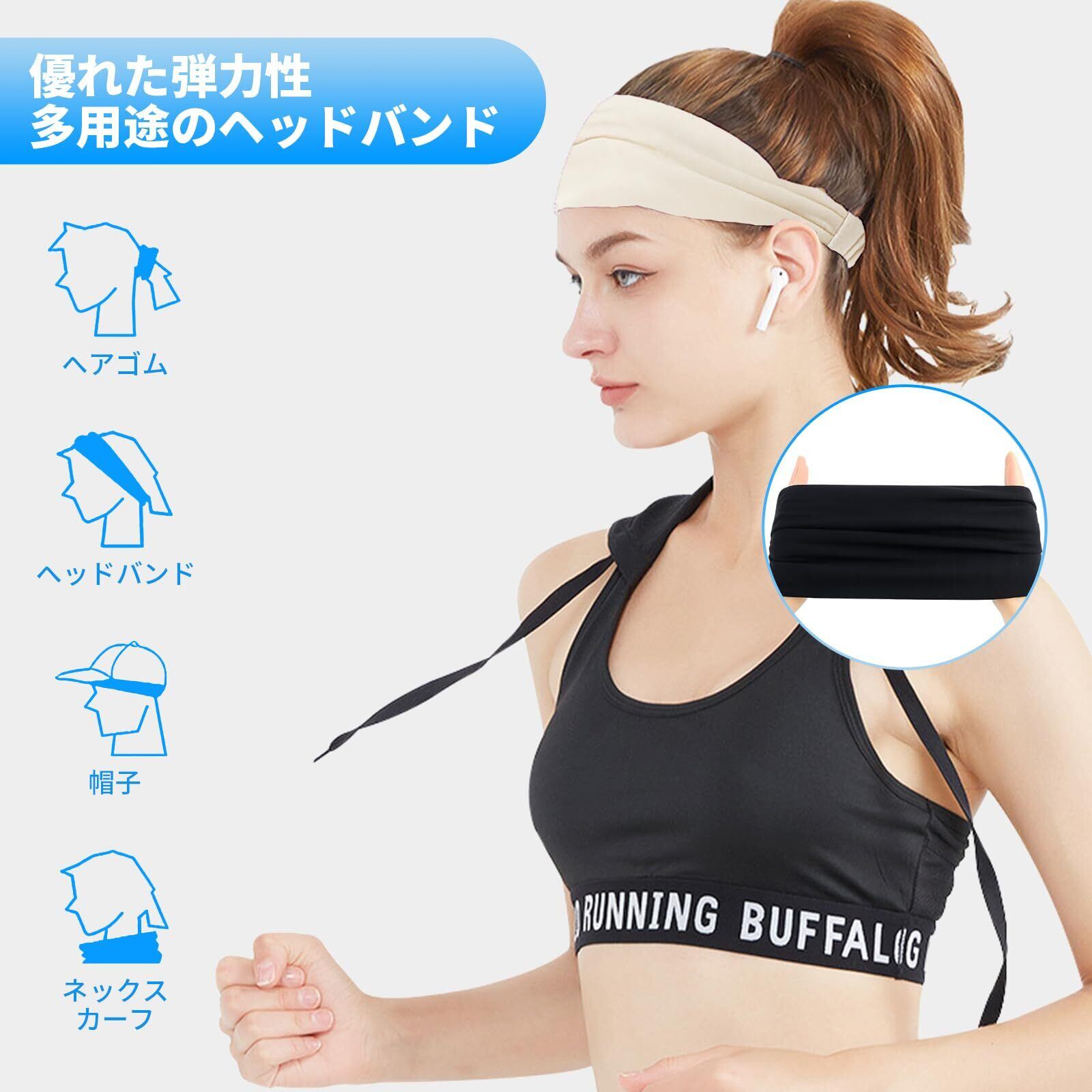 aninako ヘアバンド レディース メンズ ヘアバンド スポーツ ヘッドバンド 汗止めバンド バンダナ 帽子のつば 吸汗 柔らかさ 安定性 伸縮性 幅広 通気性 締め付け感なし 髪留め 洗顔 スポーツ ヨガ ジョギング 旅行 男女兼用 2つのモデル (ホワイト)