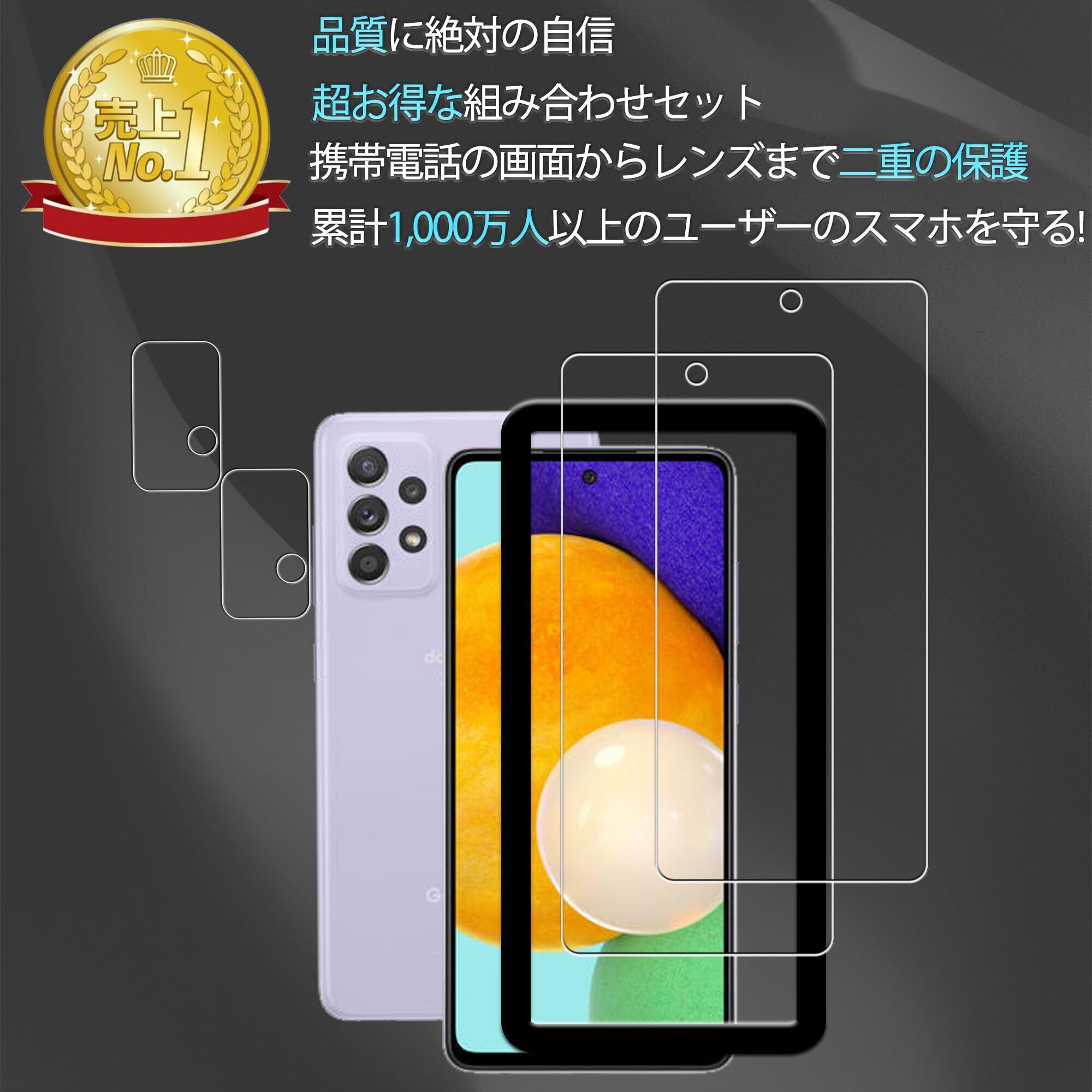 【2+2枚 指紋認証 対応】ガイド枠付き KPNS 日本素材製 強化ガラス Galaxy A52 5G SC-53B 用 ガラスフィルム カメラフィルム カバー 保護フィルム