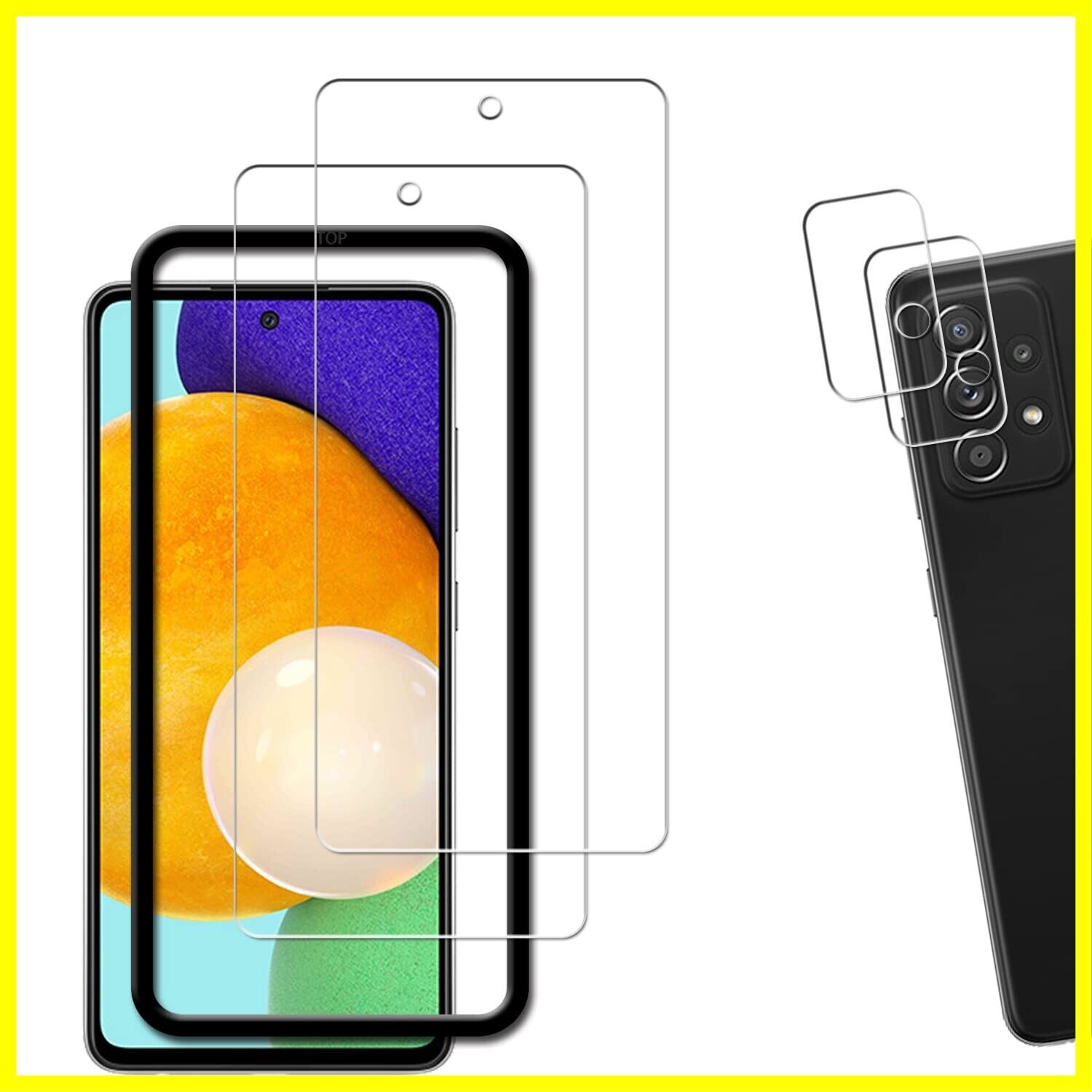 【対応機種】Galaxy A52 5G SC-53B ガラスフィルム2枚 + カメラフィルム2枚。【注意】この電話の画面の端は湾曲しているため、保護フィルムのサイズが丁度良い場合、しっかりと貼り付けられず、白いエッジやシェルとの干渉などの問題があるため、保護フィルムは画面よりも小さいです。