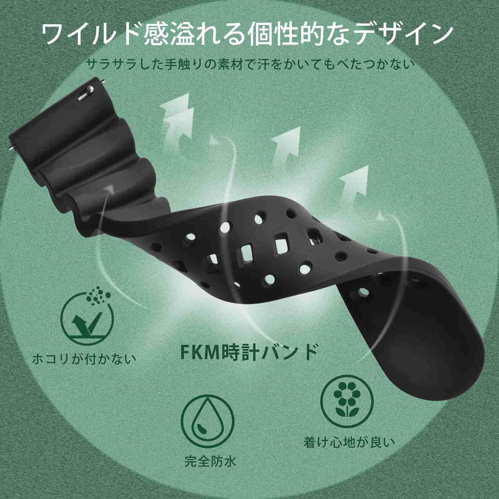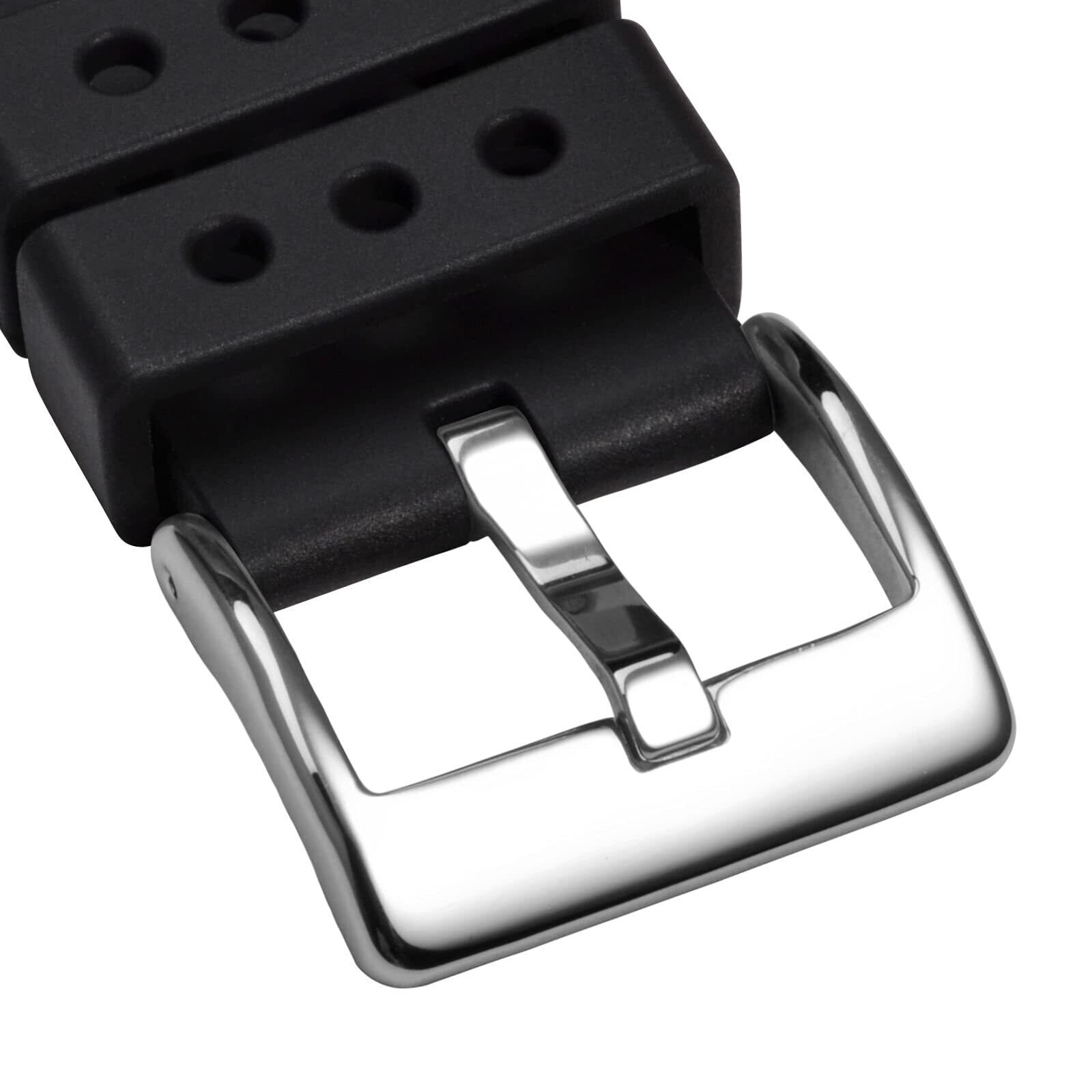 [WOCCI]フッ素ゴム時計ベルト20mm FKM高級腕時計シリコンバンド イージークリック付き ブラック/シルバーバックル