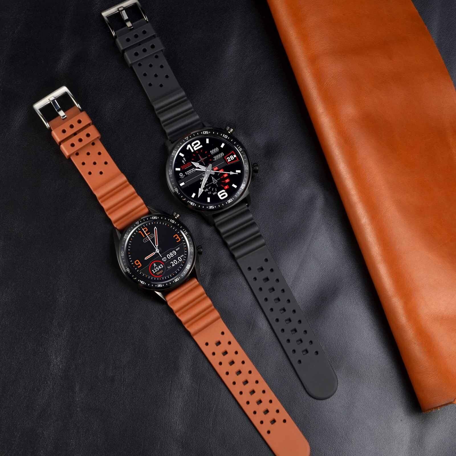 この時計バンドは幅20mm のバネ棒(スプリングバー)を使う伝統的な腕時計やスマートウォッチに適用します。