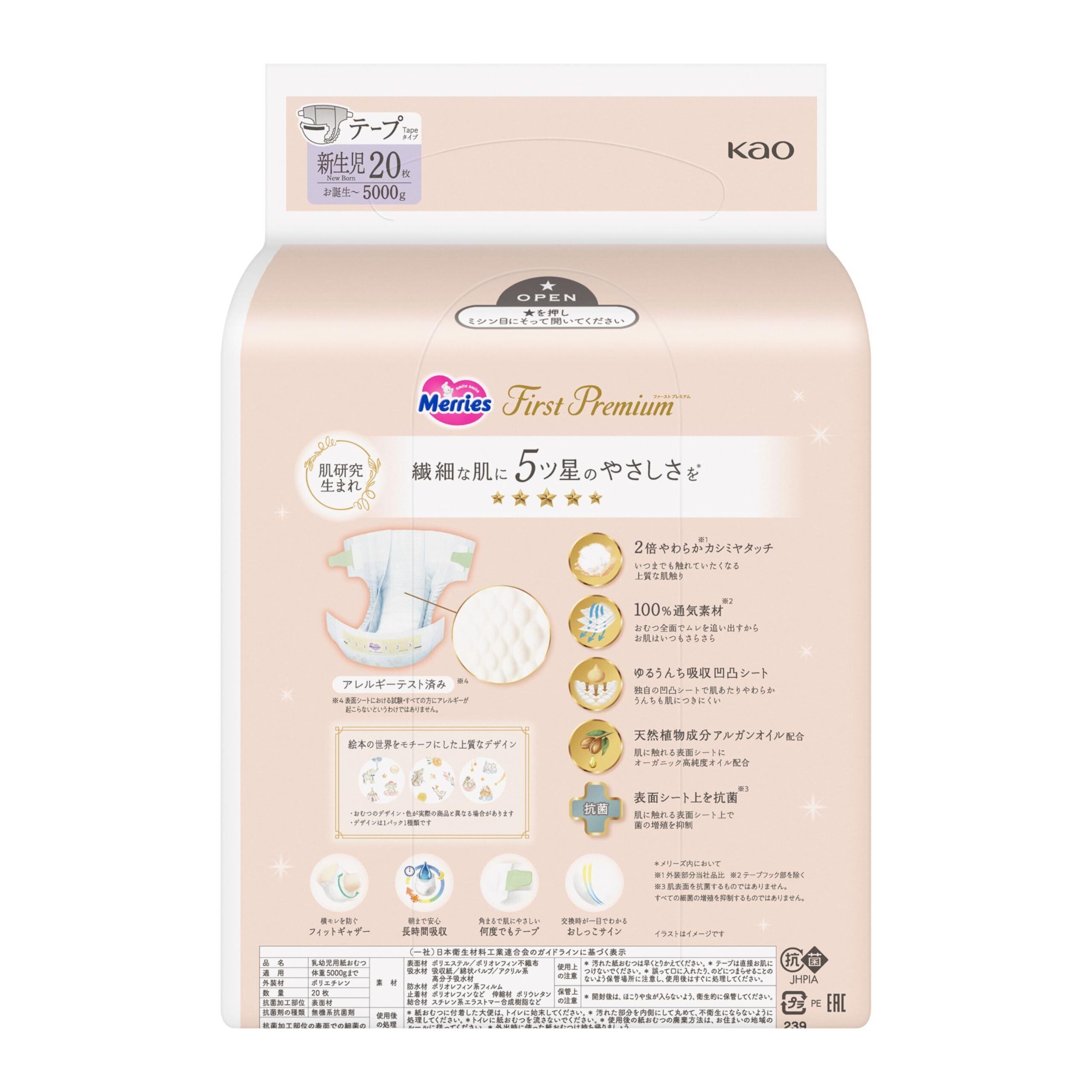 【テープ 新生児サイズ】 メリーズ ファーストプレミアム (お誕生~5000g) 2倍やわらかカシミヤタッチ ホワイト 20枚