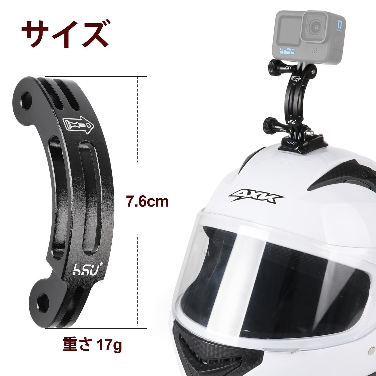 HSU アルミ製湾曲延長アーム gopro マウント ヘルメット アーム 延長 キット1/4ネジ穴付きアタプター ヘルメットマウント アクションカメラ用 アクセサリー (1本 7.6cm)