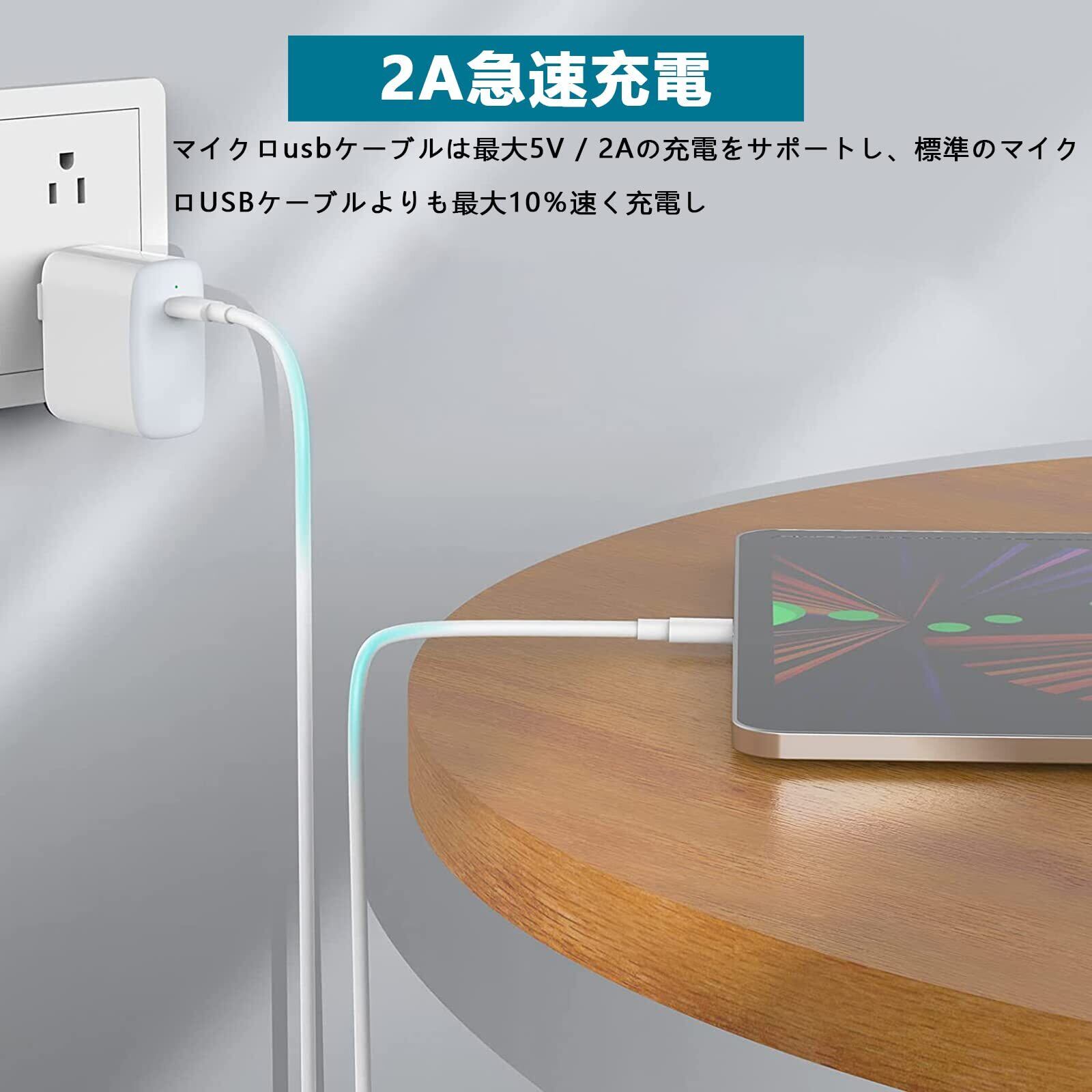 【急速充電&高速データ伝送】マイクロ USB ケーブル最大5V/2Aの充電をサポートし、標準のマイクロ USBケーブルよりも最大10%速く充電し、USB 2.0経由で最大480Mbpsのデータを転送します。
