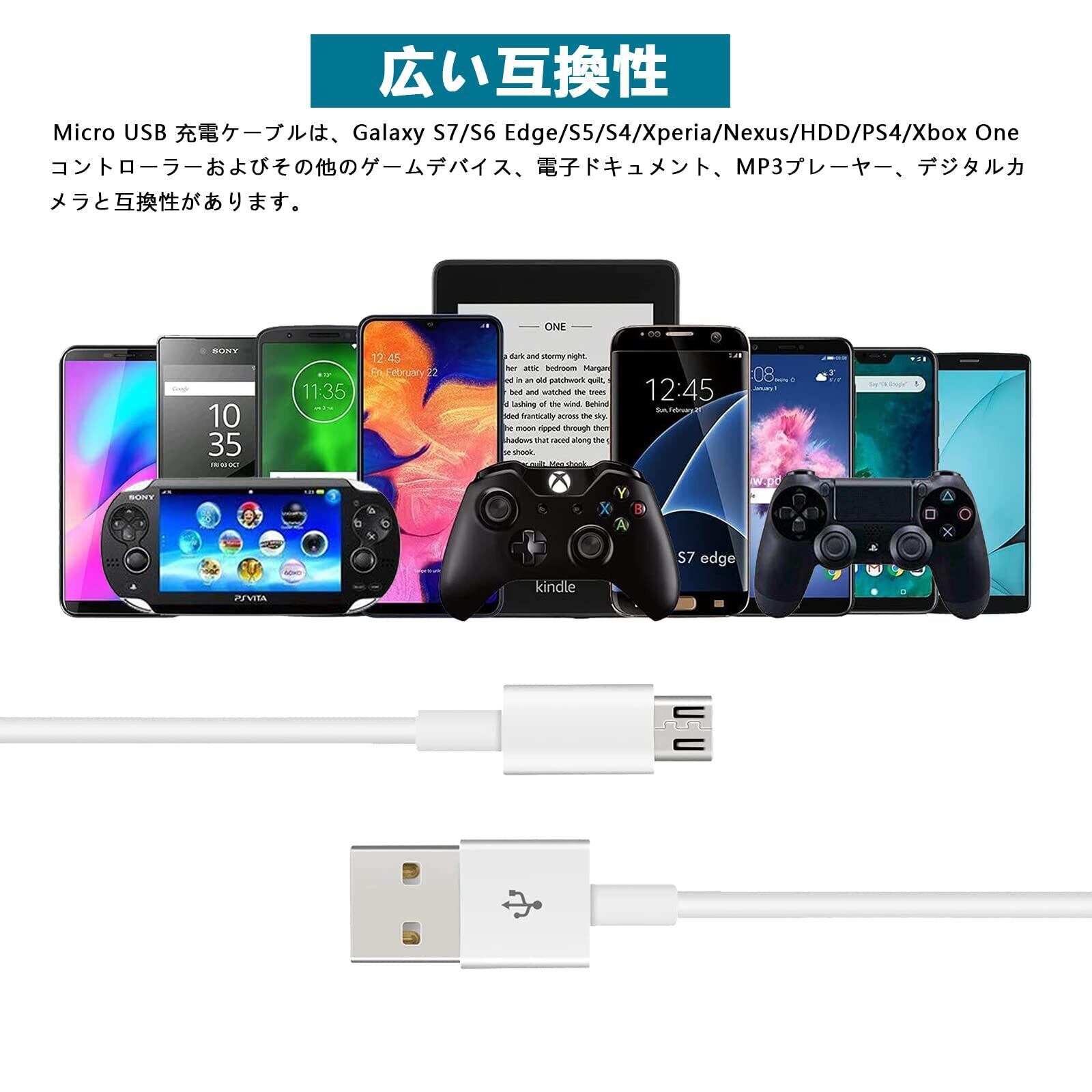 【広い互換性】Micro USB 充電ケーブルは、Galaxy S7/S6 Edge/S5/S4/Xperia/Nexus/HDD/PS4/Xbox Oneコントローラーおよびその他のゲームデバイス、電子ドキュメント、MP3プレーヤー、デジタルカメラと互換性があります。マイクロUSBコネクタを備えたすべてのデバイスと互換性があります。