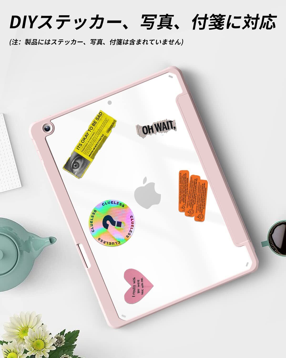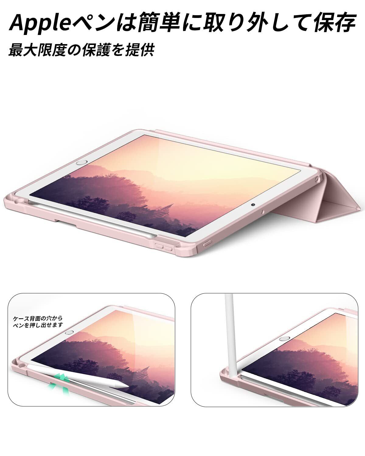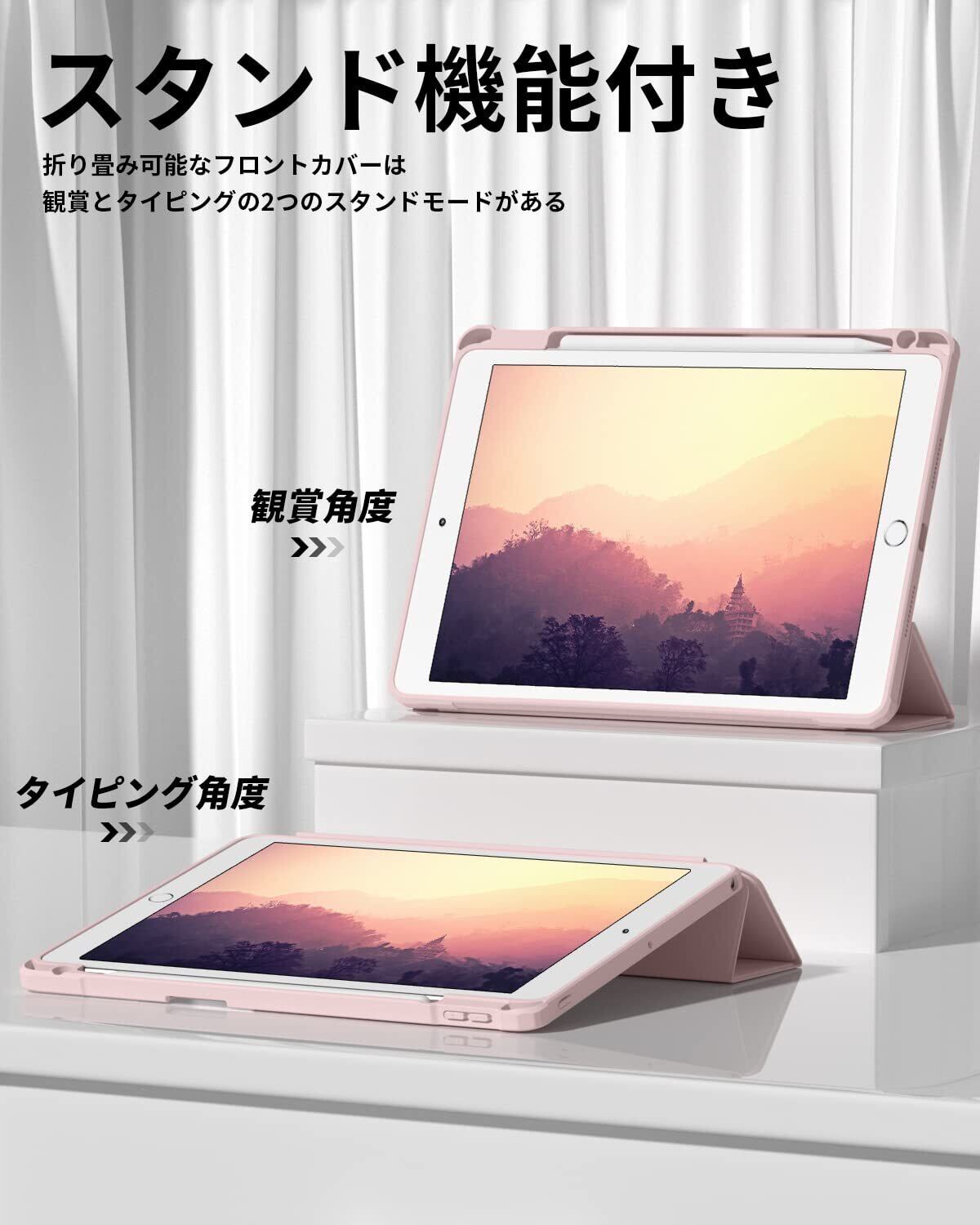 Aoub iPad 9世代 ケース 10.2 インチ iPad ケース 第9/8 /7世代 2021 2020 2019 透明バックカバー ペン収納 三つ折スタンド オートスリープ機能 軽量 薄型 傷つけ防止 PU合成レザー TPU (モデル番号A2602、A2603、A2604、A2605) ピンク