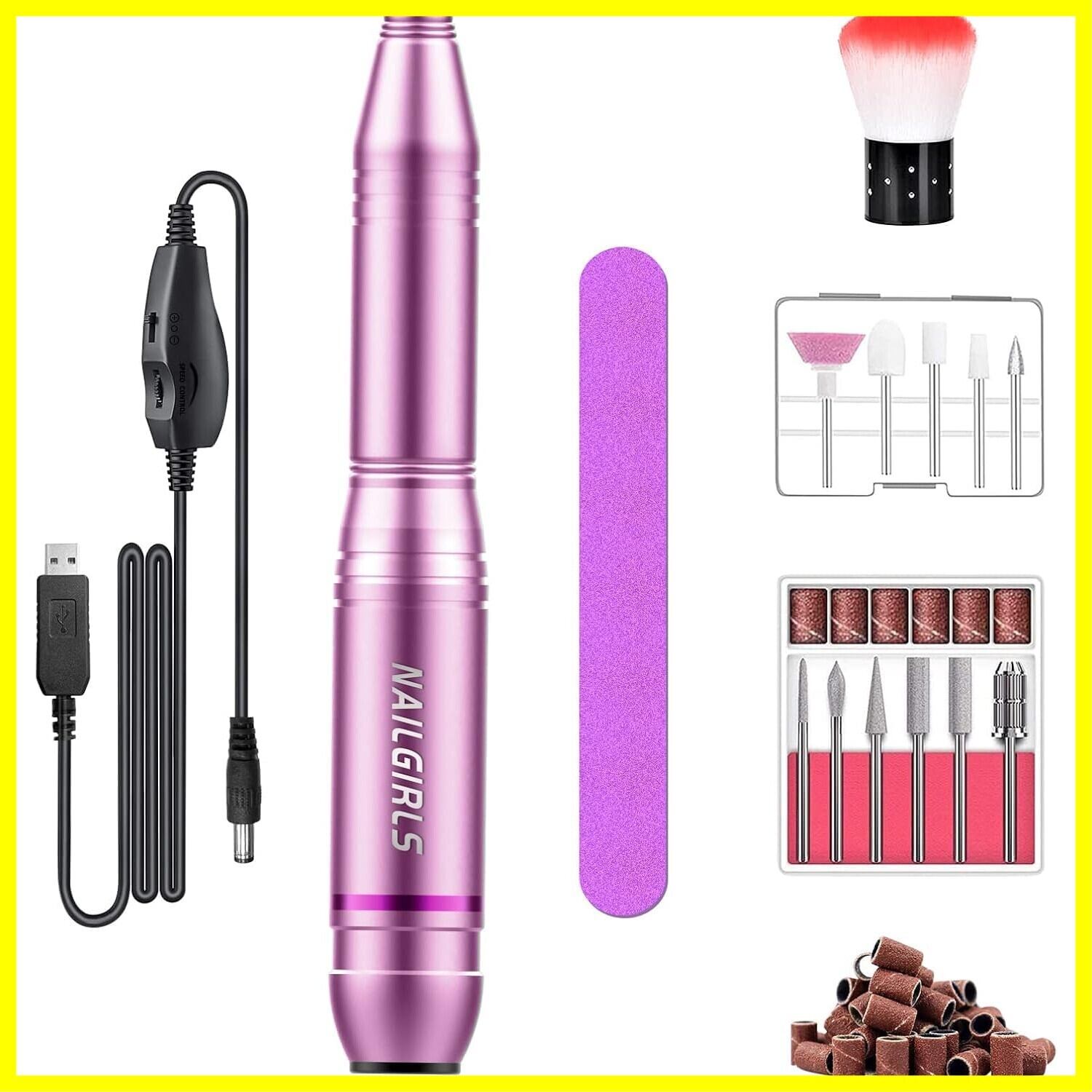 NAILGIRLS 電動ネイルマシン 11個のビット ネイルマシン ビット ジェルネイル オフ キット ネイルケア 爪磨き 甘皮処理 甘皮ケア 正逆回転 無段階変速 USB給電 自宅サロン用(ピンク)