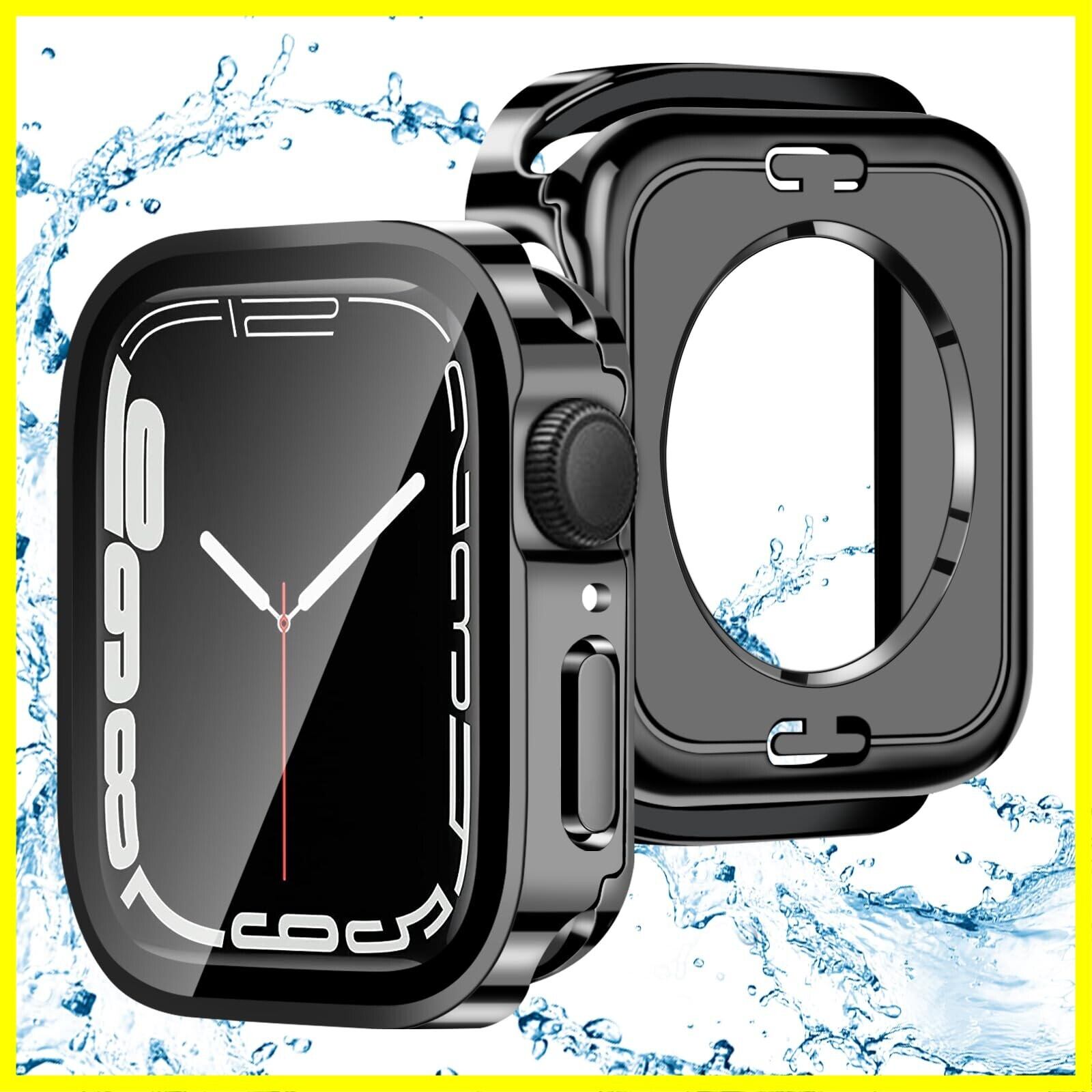 CABOBE 対応 Apple Watch ケース 44mm IP68 防水ケース 360 3D直角エッジデザイン メッキ加工 アップルウォッチSE2/SE/6/5/4 カバー Apple Watch SE2/SE/6/5/4 カバー 対応 アップルウォッチ ケース ガラスフィルム 一体型 PC素材 耐衝撃 全面保護 対応 44mm ブラック