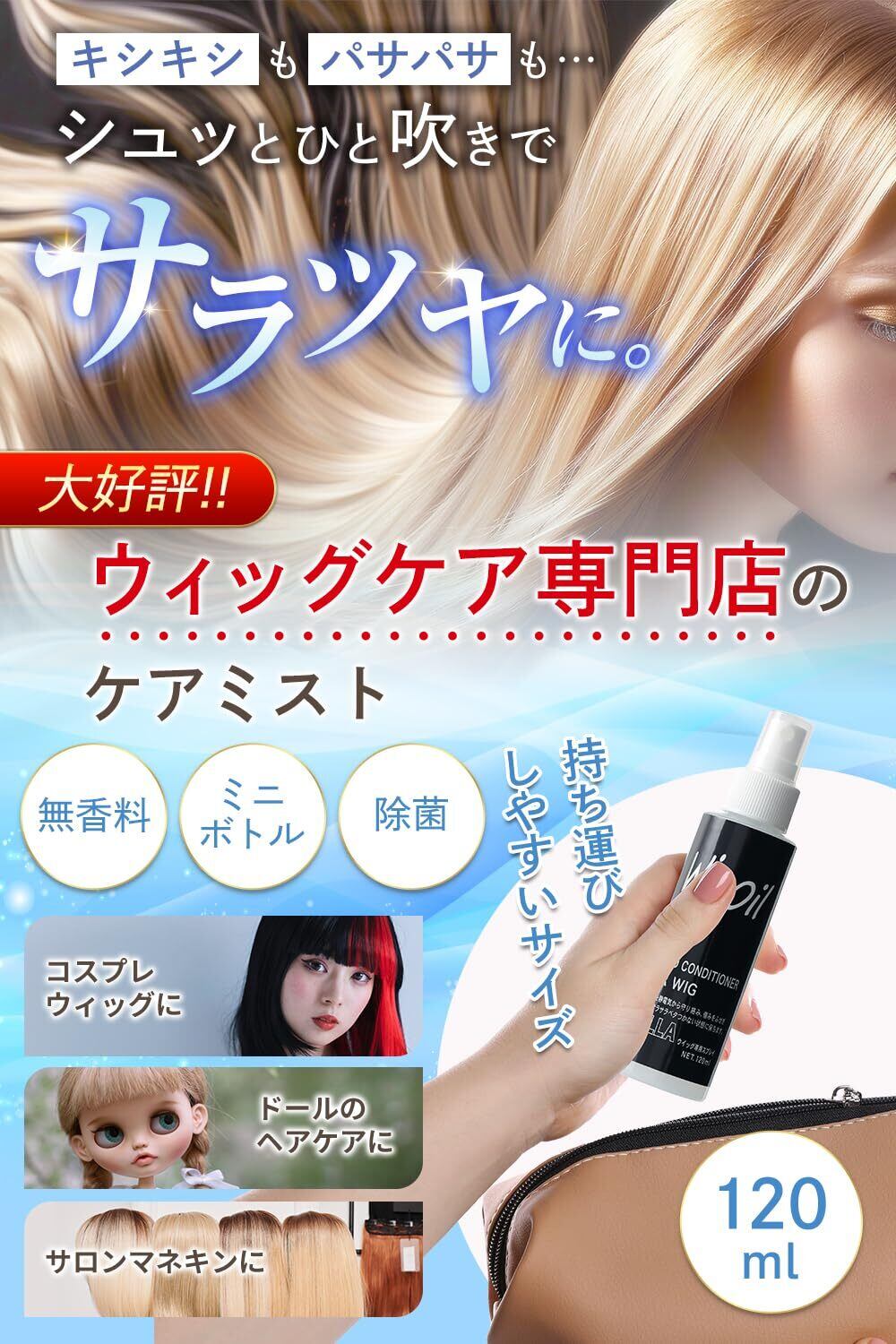 MilicaBooks ウィッグオイル ミストタイプ お手入れ用 艶出し 静電気防止 霧吹き 無香料 除菌 120ml