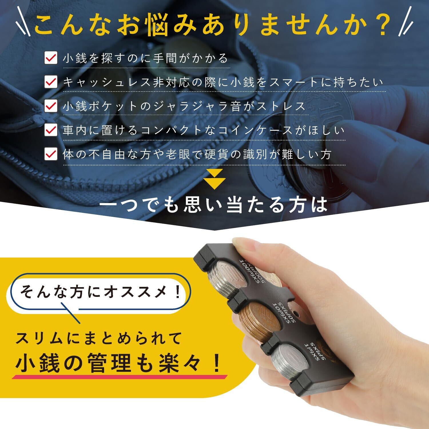 【軽くて丈夫!】本体は約4.5×9㎝のコンパクトな手のひらサイズで、コインを収納していない状態でたったの約16グラムです。コインは全部で2,830円分収納でき、収納した状態でも約130グラムにしかなりません。その為、ポケットに入れておいても気にならない程度の重さです。また、本体はABS樹脂でできているので衝撃にも強く、長く使うことができます。