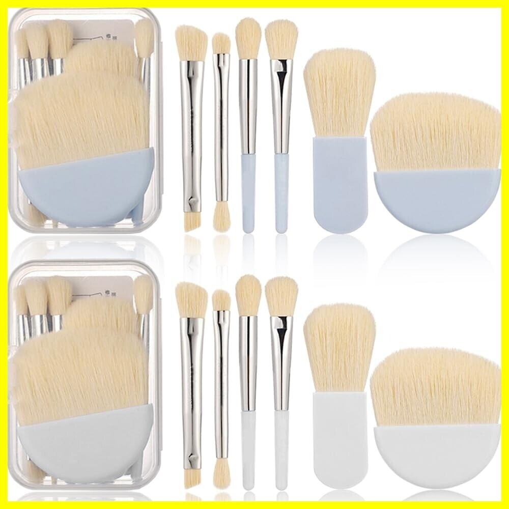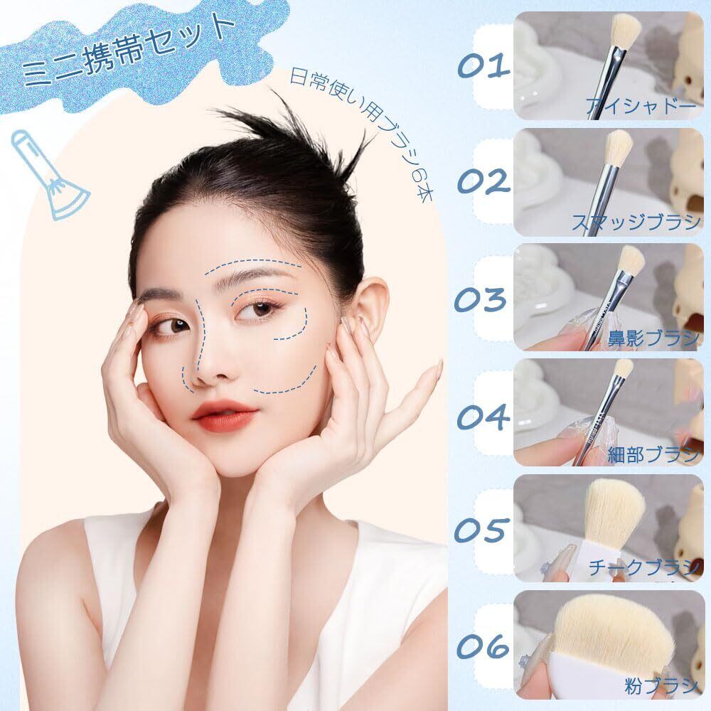 セット内容:携帯用メイクブラシ2セット(ホワイト+ブルー)、2色各6本の合計12点セット;アイシャドウブラシ、アイライナーブラシ、ファンデーションブラシ、アイブロウブラシ、リップブラシ、パウダーブラシ。 毎日のメイクに最適なメイクブラシ一式です。