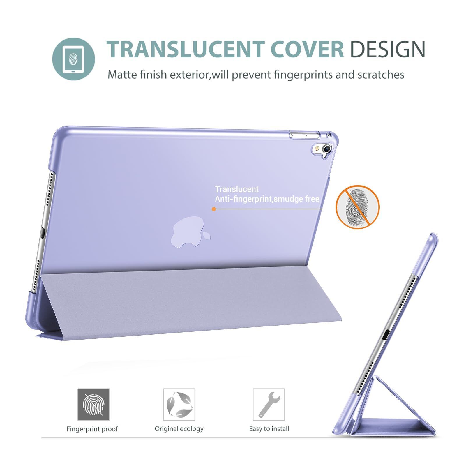 ProCase iPad Pro 9.7ケース スマート 超スリム スタンド フォリオ保護ケース 半透明フロスト バックカバー 対応機種: iPad Pro 9.7 2016 (A1673 A1674 A1675) - ライトパープル