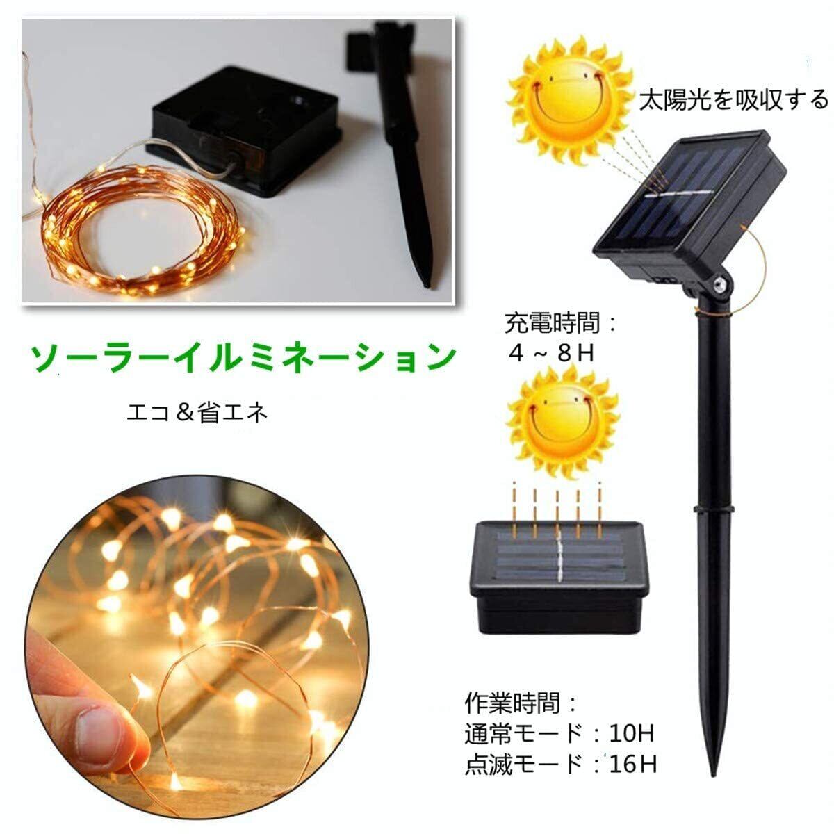 ❊本品(200電球20m)は当社100電球10mの方の箱は同じで、箱に書いてある仕様は違う場合がありますので、予めご了承のほどよろしくお願い申し上げます。【ソーラー給電&エコ・安全 】ソーラー式なので電気代ゼロ!暗くなったら自動点灯するので設置した後は全自動です。LEDライトは電球に比べ発熱量が小さく熱くならない為、植物などのライトアップにも安全で最適です。
