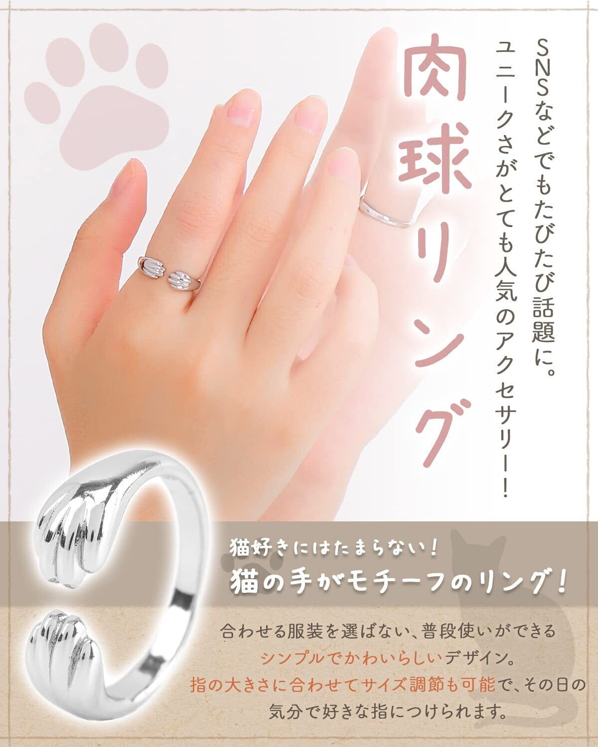 [ケーエルユー] 猫 指輪 肉球 跡が残る フリーサイズ リング 調節可能 ファッションリング 人気