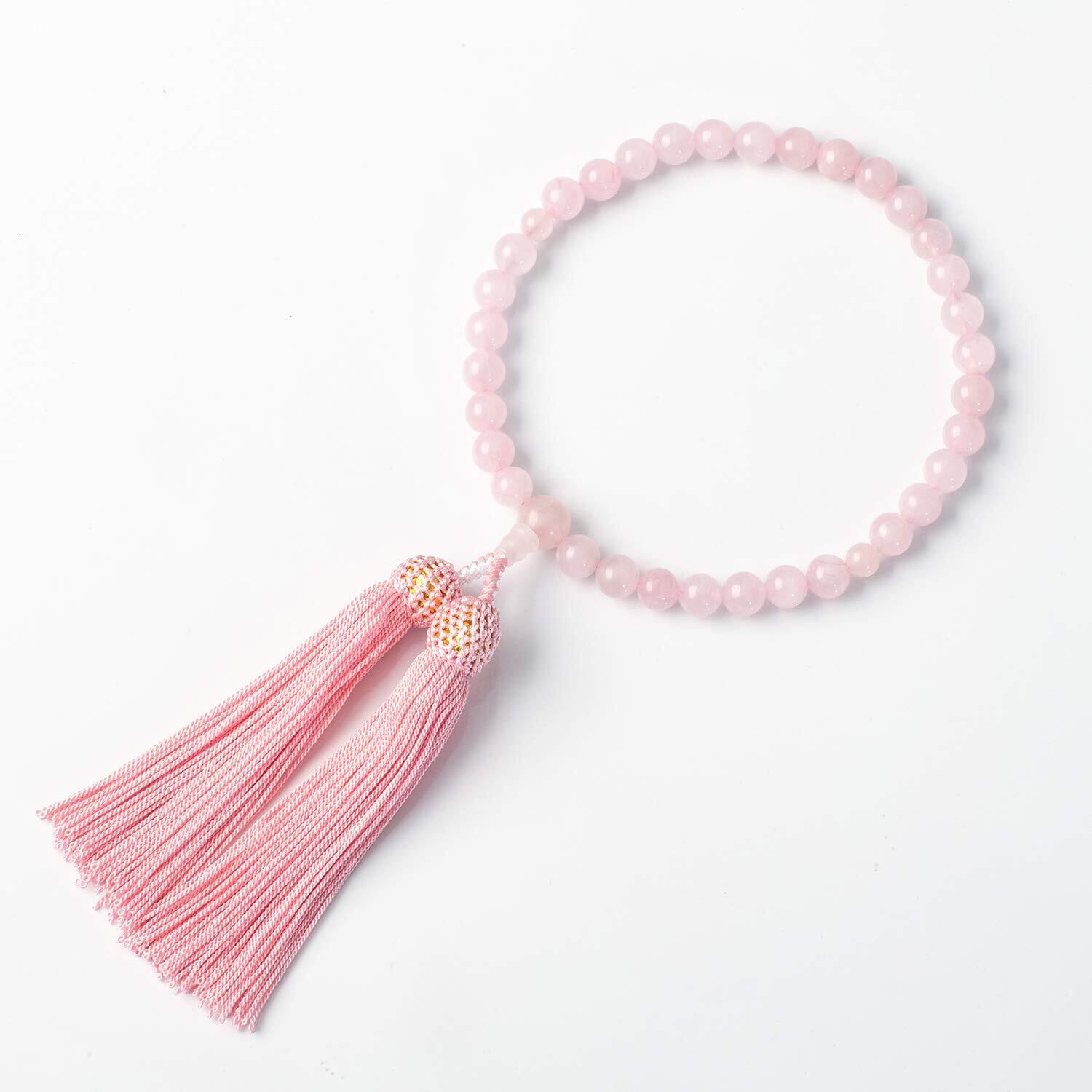 LEOBEE 女性用数珠 マグネット式数珠袋付き 念珠 じゅず 手作り念珠 数珠ブレスレット 葬式 葬儀 墓参り 法事 念誦 全ての宗派で使用頂け 紅水晶(ローズクォーツ) 落ち着いたピンク プレゼント