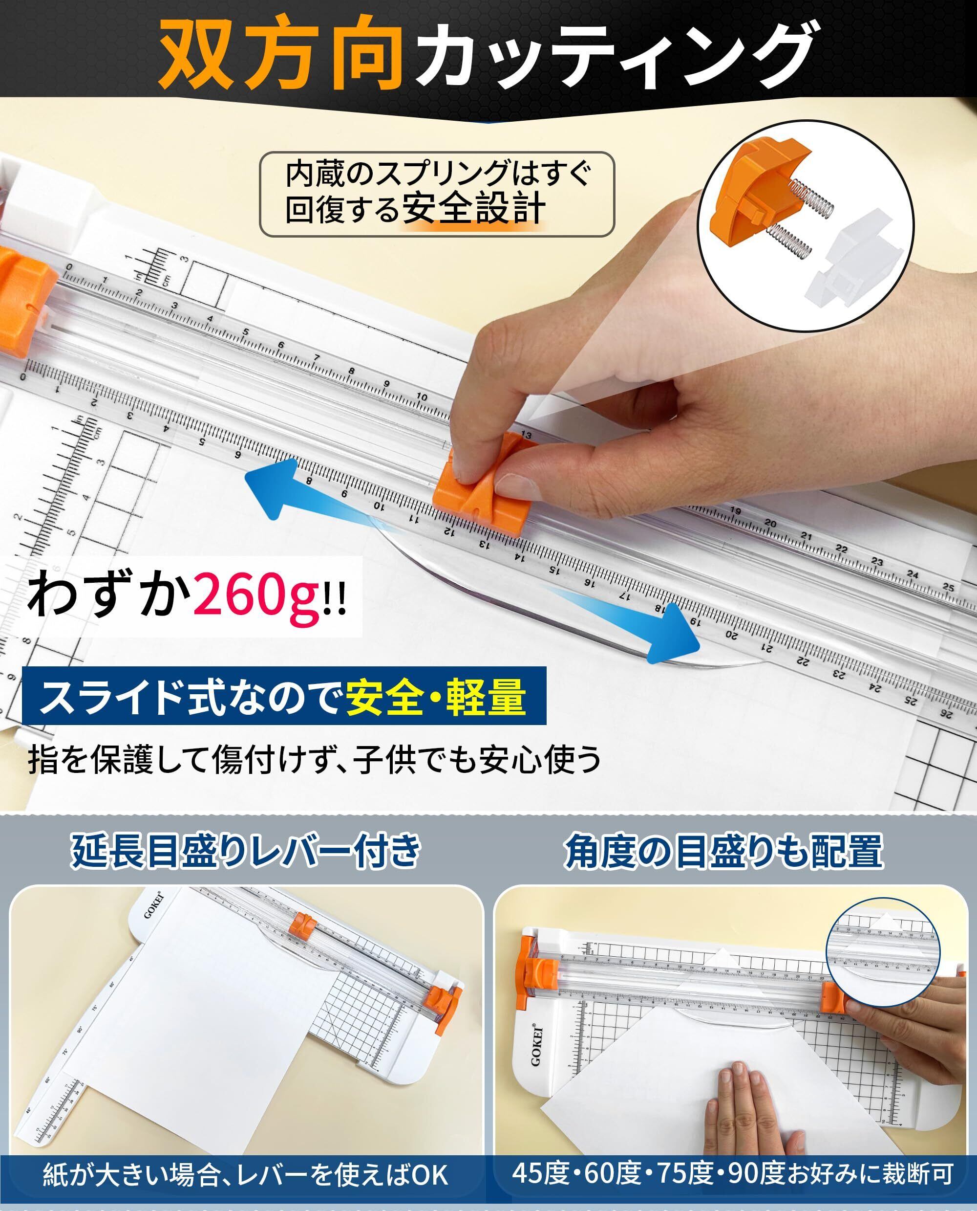 GOKEI ペーパーカッター ミニ裁断機 ペーパートリマー A4 A5 対応 スライドカッター 隠さ カッター 替刃 直線切断 角度切断 切れ味抜群 切断機 文房具 コーピー用紙 厚紙 名刺 写真 ラミネートフィルム オフィス用品 事務用品 業務用 家庭用 ディスクカッター ホワイト