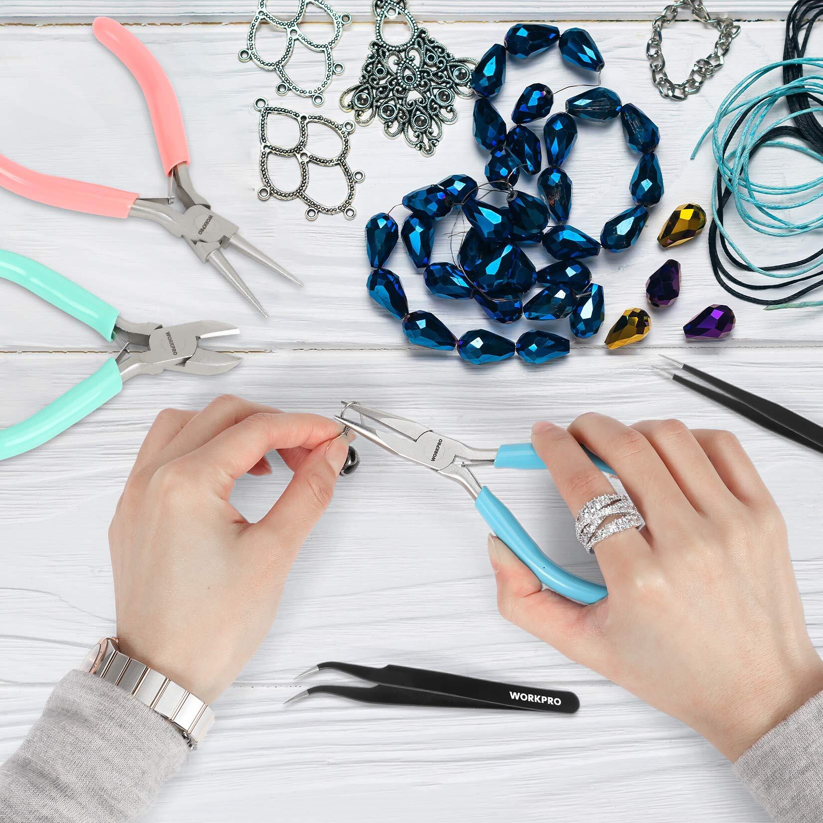 WORKPRO アクセサリー工具セット ペンチ 平やっとこ ニッパー 丸ペンチ ピンセット 手芸用 5本組 収納ケース付