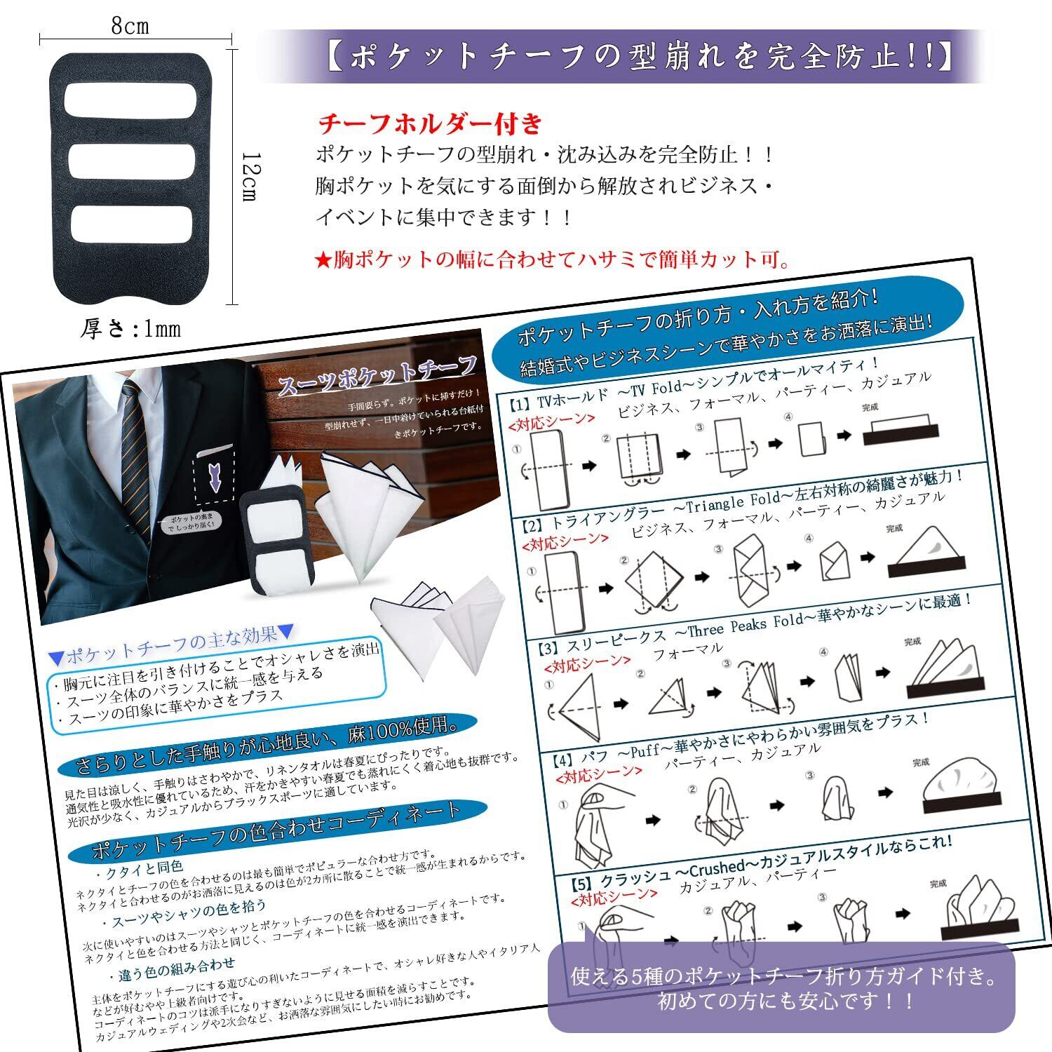 [Beirou] ポケットチーフ リネン 麻 100% 縁取り ホワイト 無地 ハンカチ メンズ 紳士 おしゃれ プレゼント 結婚式 フォーマル ビジネス カジュアル 型崩れ 防止 【ホルダーと折り方ガイド 付き】