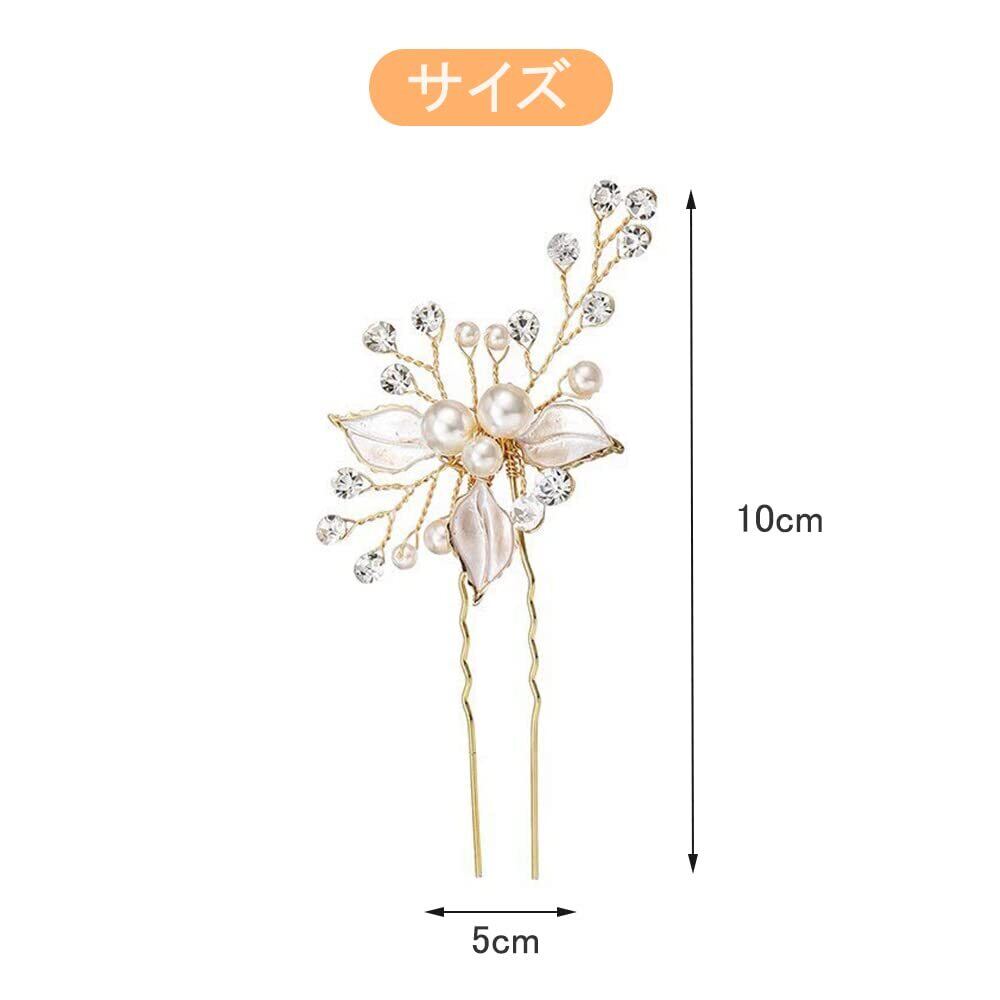 DFsucces ゴールドヘアピン 三つ葉 ヘアピン 結婚式 二次会 発表会 卒業会 パール 髪飾り (ゴールド-2本セット)