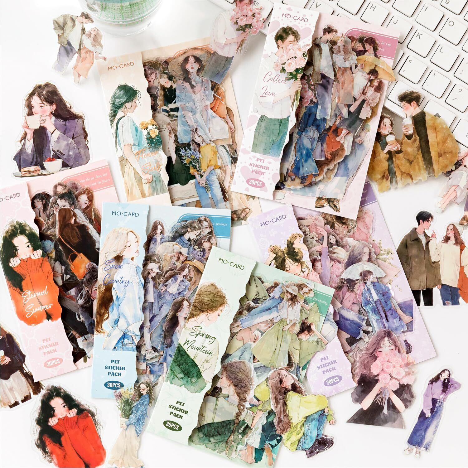 60枚 シール フレークシール コラージュ 素材 ペーパー 素材紙 レースユートピアステッカーレトロファッショナブルな女の子たち海外韓国 シール帳 ,メモ用紙ノート素材、日記装飾用品 (weimanchunshan)