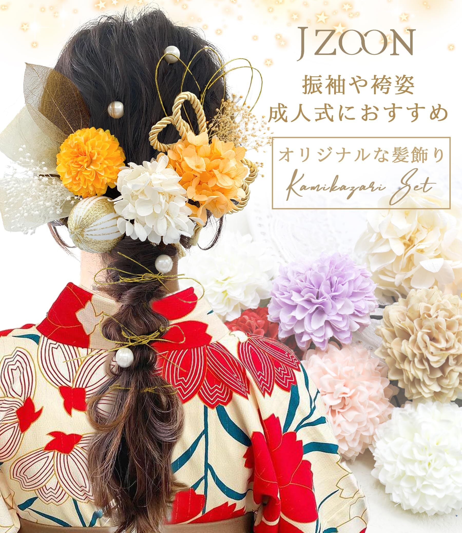 デザイン:お花はUピンの設計で、使いやすくなり、一人片手で付けることができます。全8色アジサイ· ピンポンマム·水引·ミニスケルトンリーフなど組み合わせの髪飾りは伝統的な着物に合わせて可愛らしく、優しい質感が際立ちます。