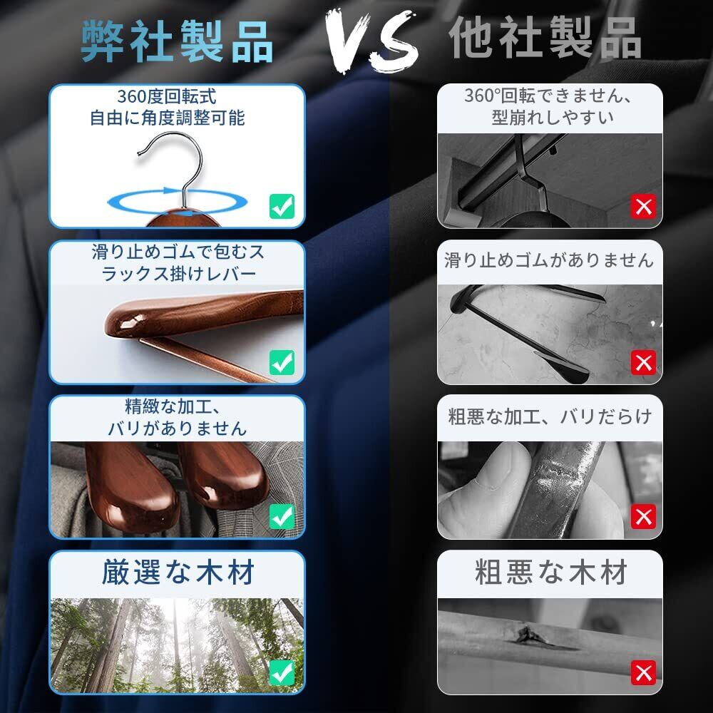 【厳しい品質基準】自社で徹底した品質管理を行い、厳しい品質基準をクリアしたものだけを出荷しています。生産から検品までの過程で、木材の割れやバリ、光沢の剥げなどの不良の有無を細かくチェックし、不良品を徹底的に排除し、高品質の木製ハンガーをお届けします。さらに、商品を無事にお届けする為に丁寧に梱包し発送しています。外装は高級感あるデザインにしているため、プレゼントにも問題ありません。
