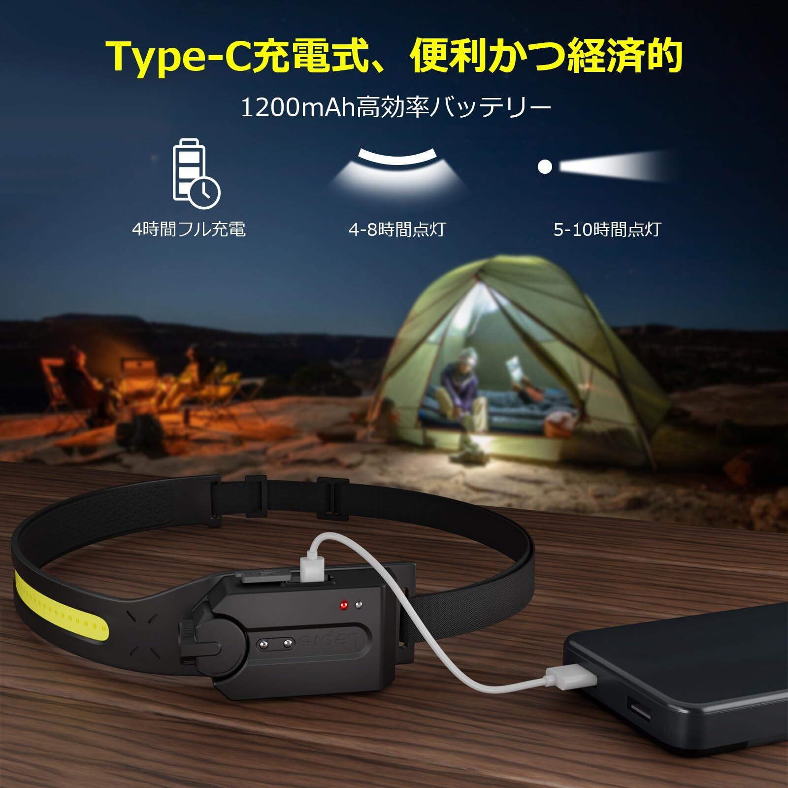 Lepro へッドライト 充電式 へッドランプ led 高輝度 230°COB広角照明 角度調整可 センサー付き 5つ点灯モード 防水 軽量 ledへッ ドライト キャンプ ランニング