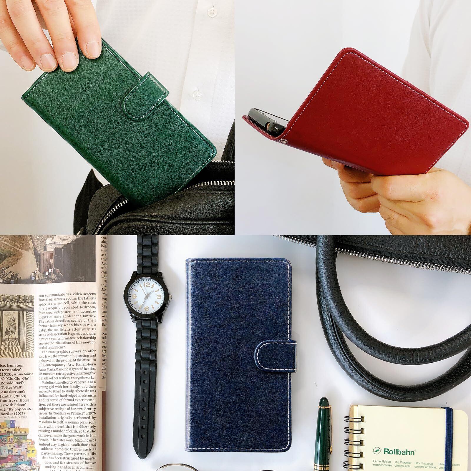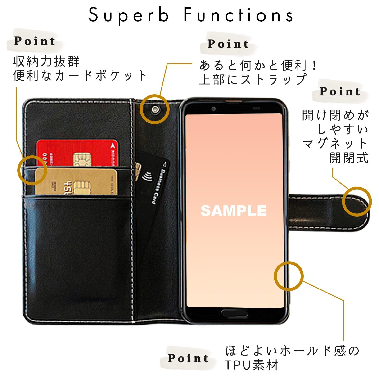 手帳部分と内側ケース部分は接着しておりますが、強くめくったりひっぱると剥がれる場合がございます。内側のケースは黒TPUを使用し、本体をしっかりカバーします。電源ボタンや音量ボタンなどは、黒TPUケースの上から押す仕様となっております。カメラ部分などは機種に合わせた開口部が開いております。