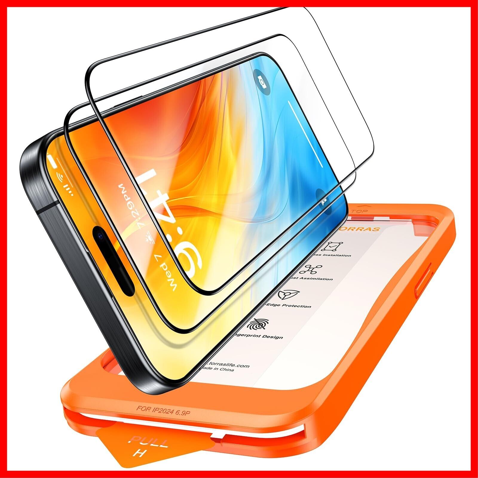 TORRAS iPhone 16 用/iPhone15用 ガラスフィルム 航空宇宙材料 米軍No.1規格 ガイド枠全面保護 10倍強化極細縁 さらさら 貼り付け簡単 指紋防止 9H越え 耐衝撃 2枚 アイフォン16 /15 用 保護フィルム GlassGo Ultra