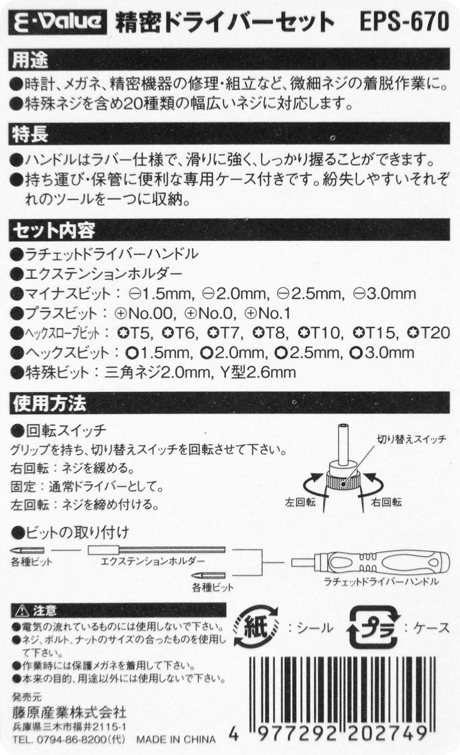 イーバリュー(E-Value) 精密ドライバーセット 三角・Y型・トルクスネジ対応 22個セット EPS-670