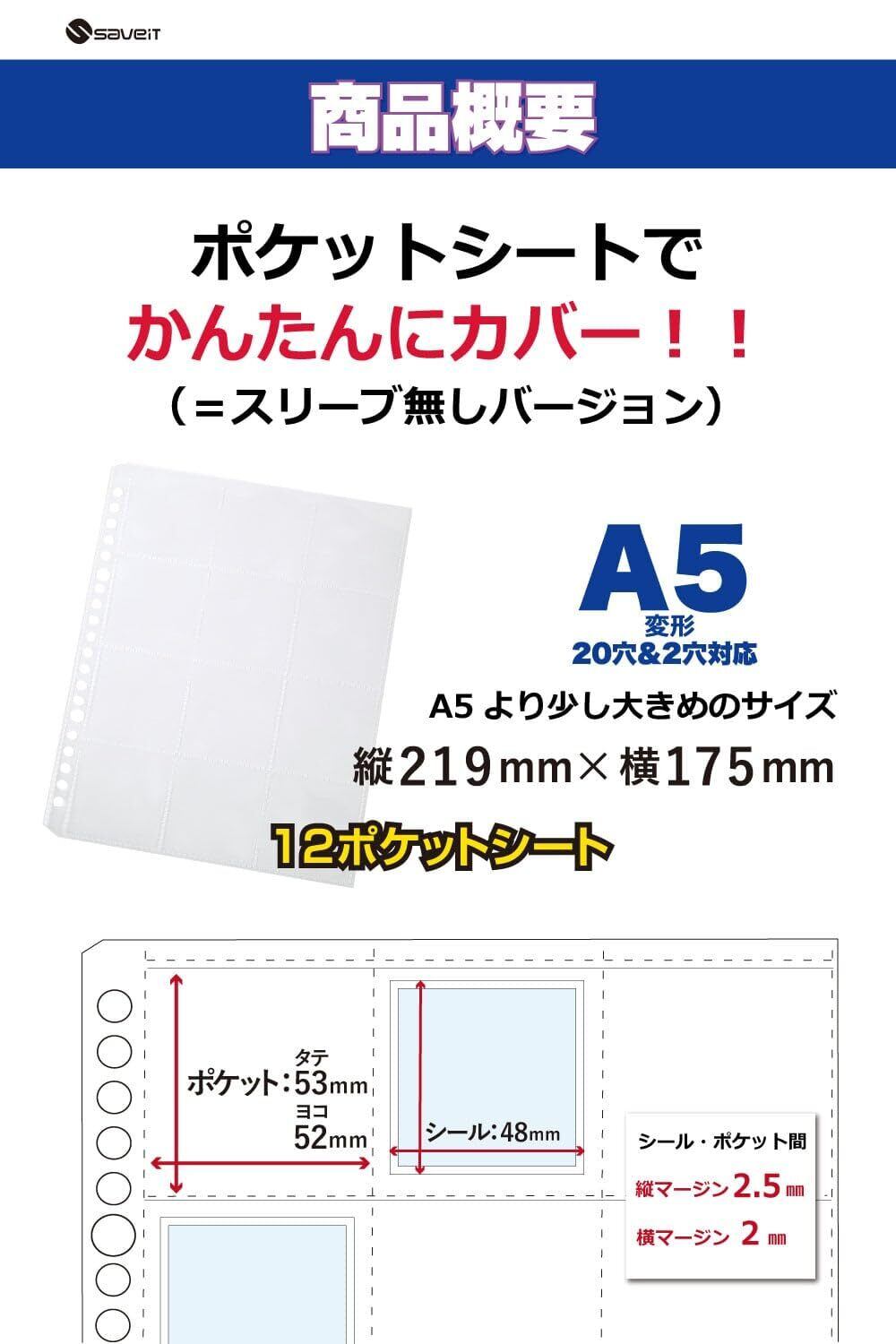 【商品サイズ】 当商品は、48㎜シール専用となります。52㎜のシールは使用できませんので予めご了承ください。サイズが不明な場合には必ずご購入前にご自身のシールの長さを計ってお確かめください・12ポケットシート:縦219mm×横175mm(20穴&2穴対応)