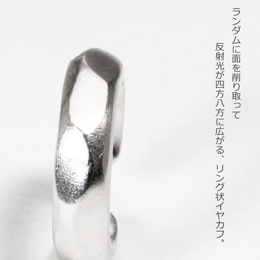 ランダムに面を削り出したイヤーカフ。形状はメカパーツのような武骨さがありますが、角のエッジを穏やかにし、軽い研磨による控えめなマット処理で柔らかい印象に仕上げているので、メンズ、レディースどちらでもお使いいただけます。片耳用の1個販売です。