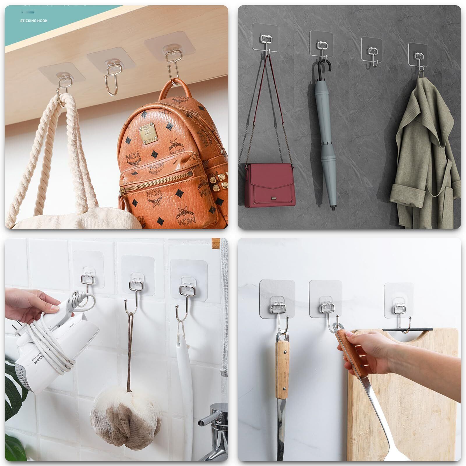 【穴開けない・貼り付け跡なし】粘着シールとグルームが透明で、よくに使用環境に溶け込めます。穴を開ける必要がないので、貼り付け面に傷をつけない、便利で実用的な壁掛フックです。