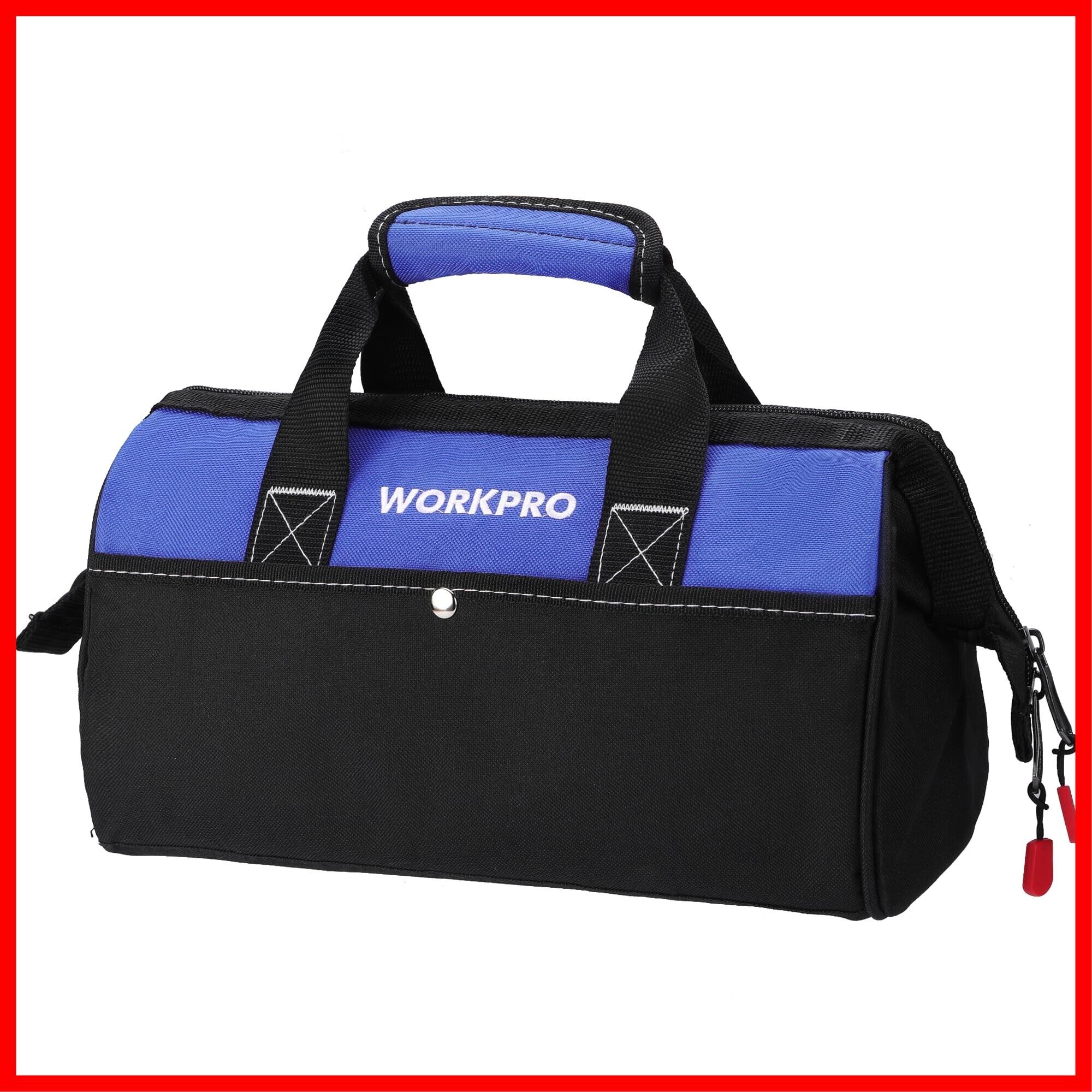 WORKPRO ツールバッグ 工具差し入れ 道具袋 工具バッグ 大口収納 600Dオックスフォード ワイドオープン 幅33cm