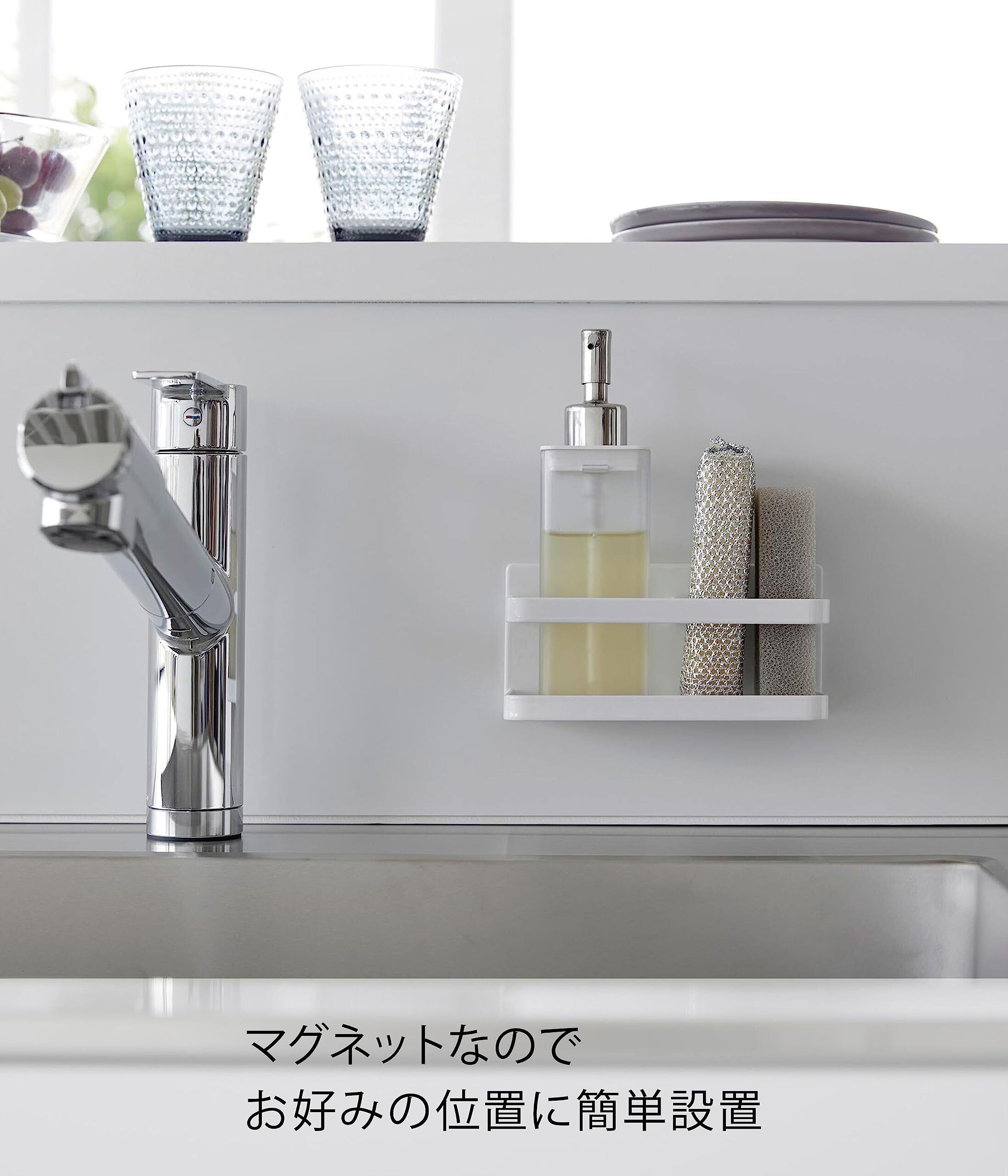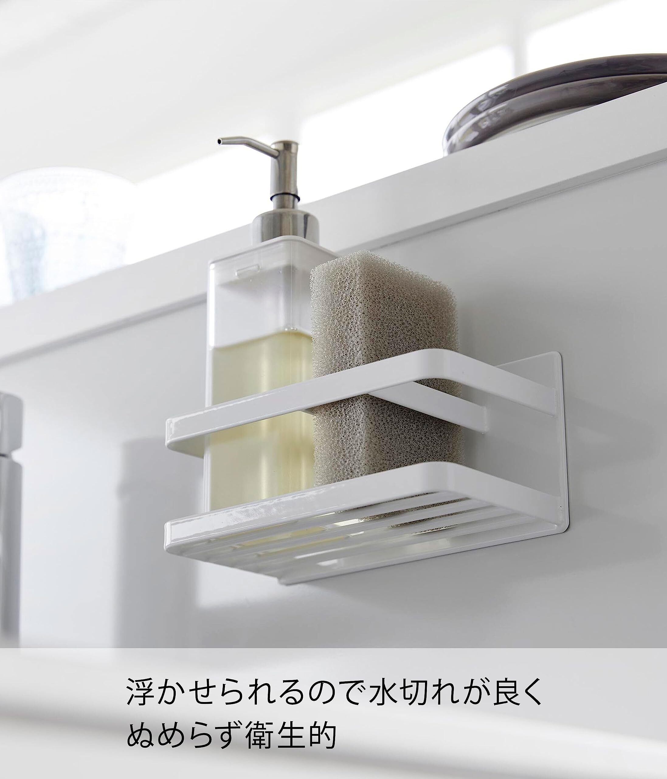 山崎実業(Yamazaki) マグネット スポンジ & ボトルラック ホワイト 約W16.5×D8.5×H8cm タワー tower スポンジ置き スポンジラック 浮かせる収納 3337