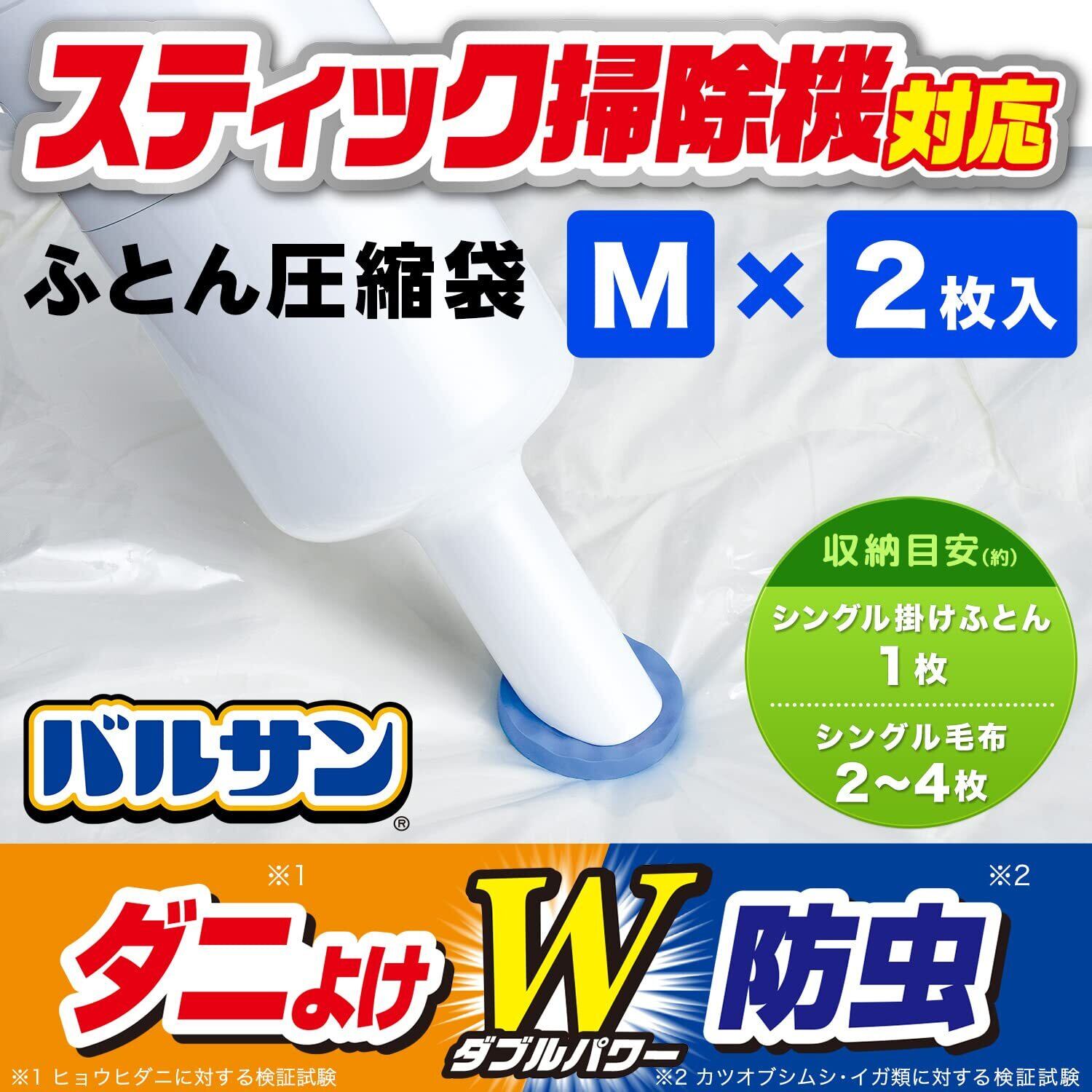 レック(LEC) バルサン スティック掃除機対応 ダニ除け・防虫加工 ふとん圧縮袋 Mサイズ (2枚入) /目安:セミダブル掛けふとん1枚/ふつうの掃除機もOK/H00380