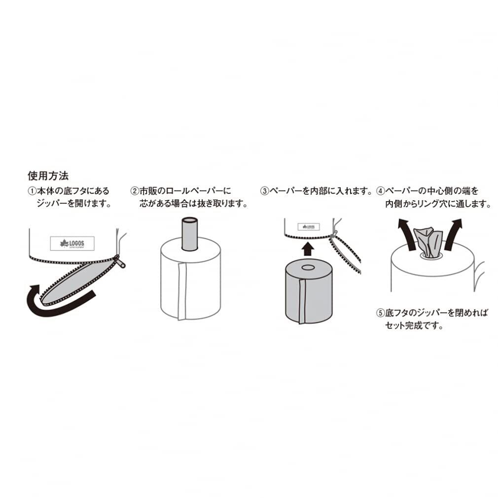 総重量:(約)55g サイズ:(約)直径13×高さ12cm 主素材:[生 地]ポリエステル(PVCコーティング) ワイドサイズのロールペーパーも収納可能。汚れや濡れからロールペーパーを守ります。LOGOS Lifeデザイン